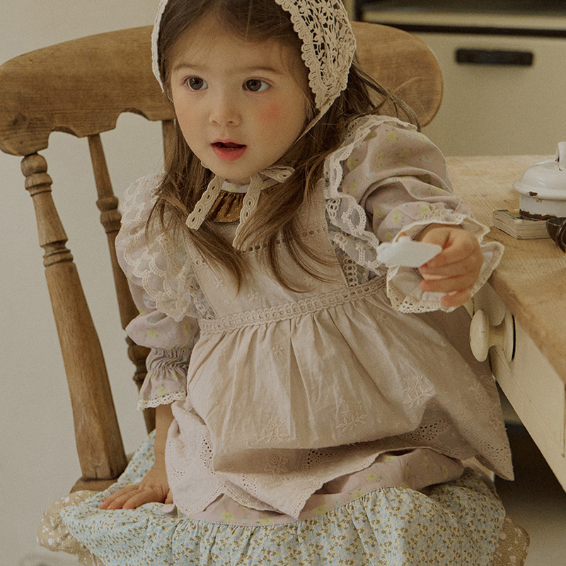Spring Product Strawberry Shan Korean Children And Girls Stylish Embroidered Lace Vest Blouse In Stock