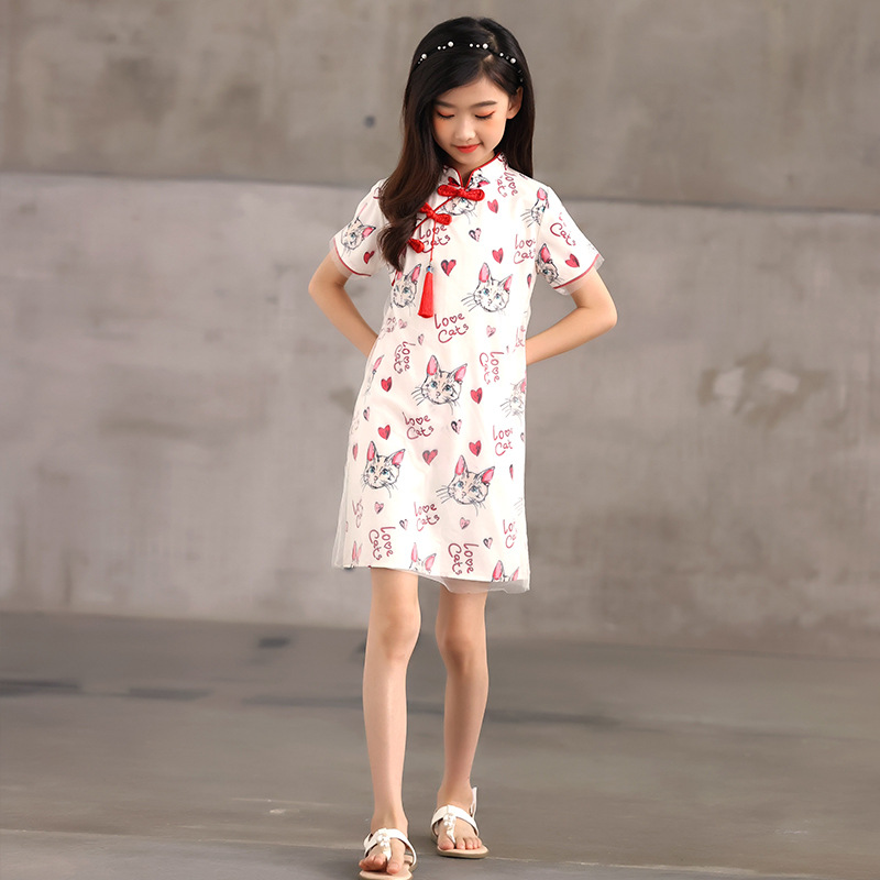 Girls Cheongsam Summer Thin Chinese Style Improved Middle And Large Children Little Girl Children Cheongsam Skirt Fishtail National Tide Cheongsam