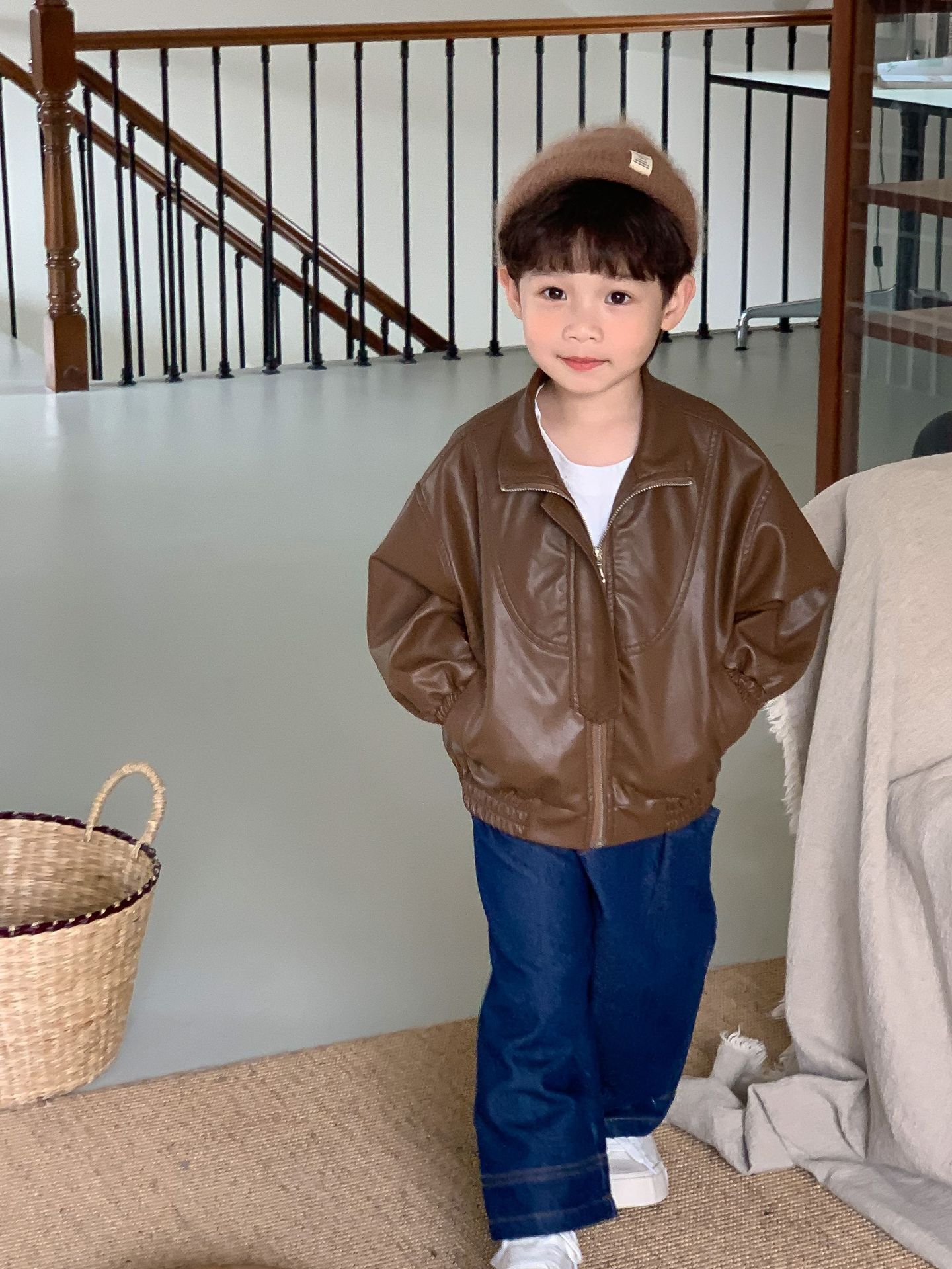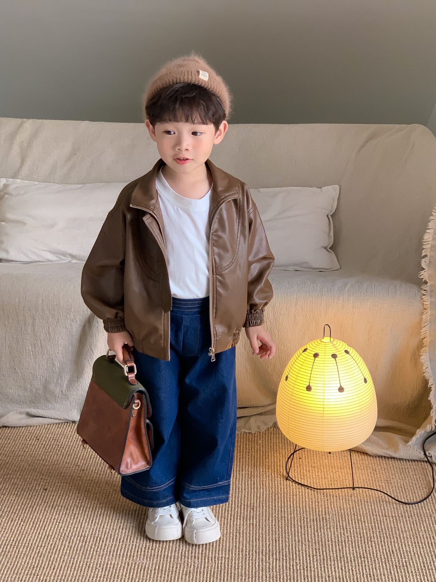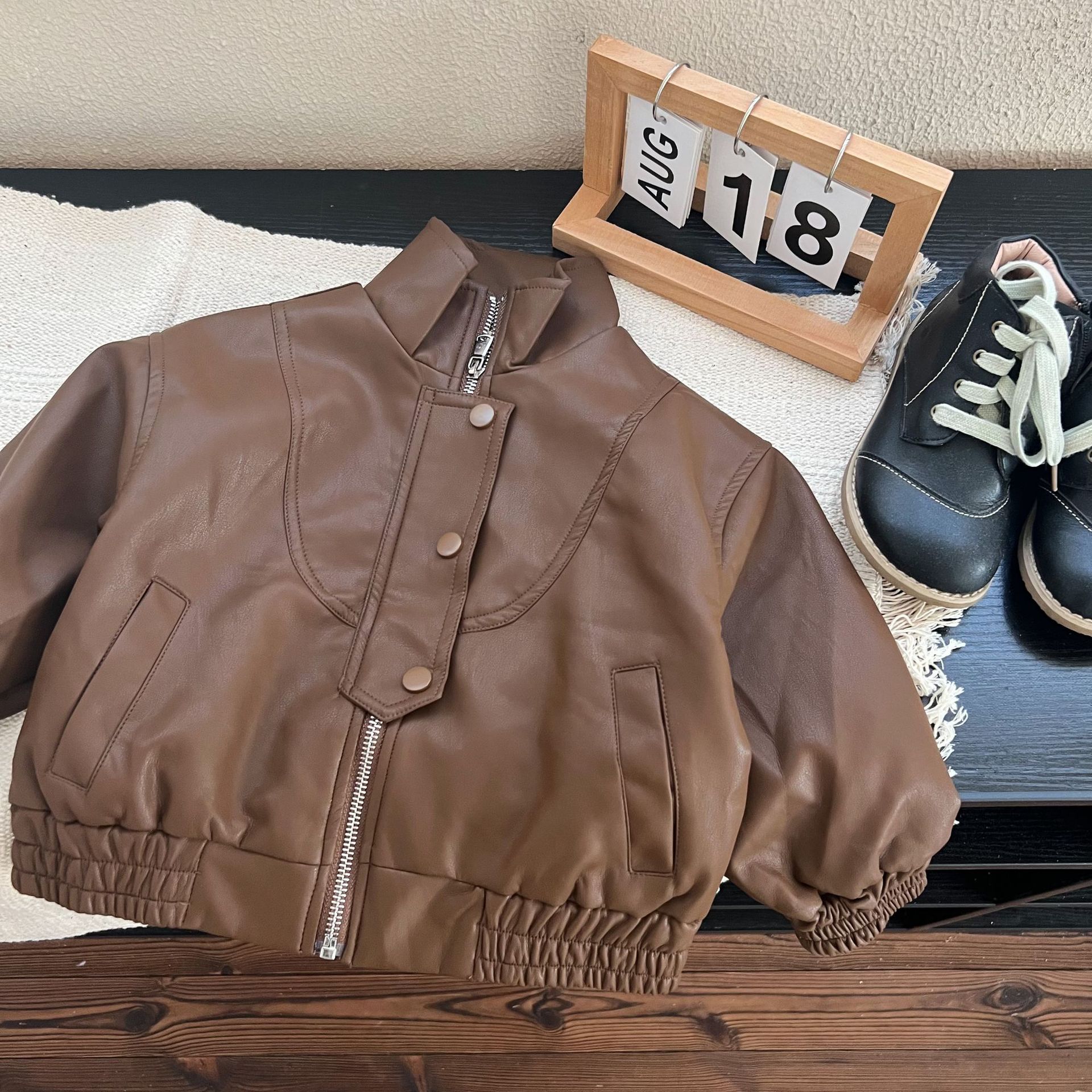 Wheatfield Season Autumn And Winter Korean Children's Clothes Children's Leather Clothes Boys And Girls Unisex Casual Jackets Wallets