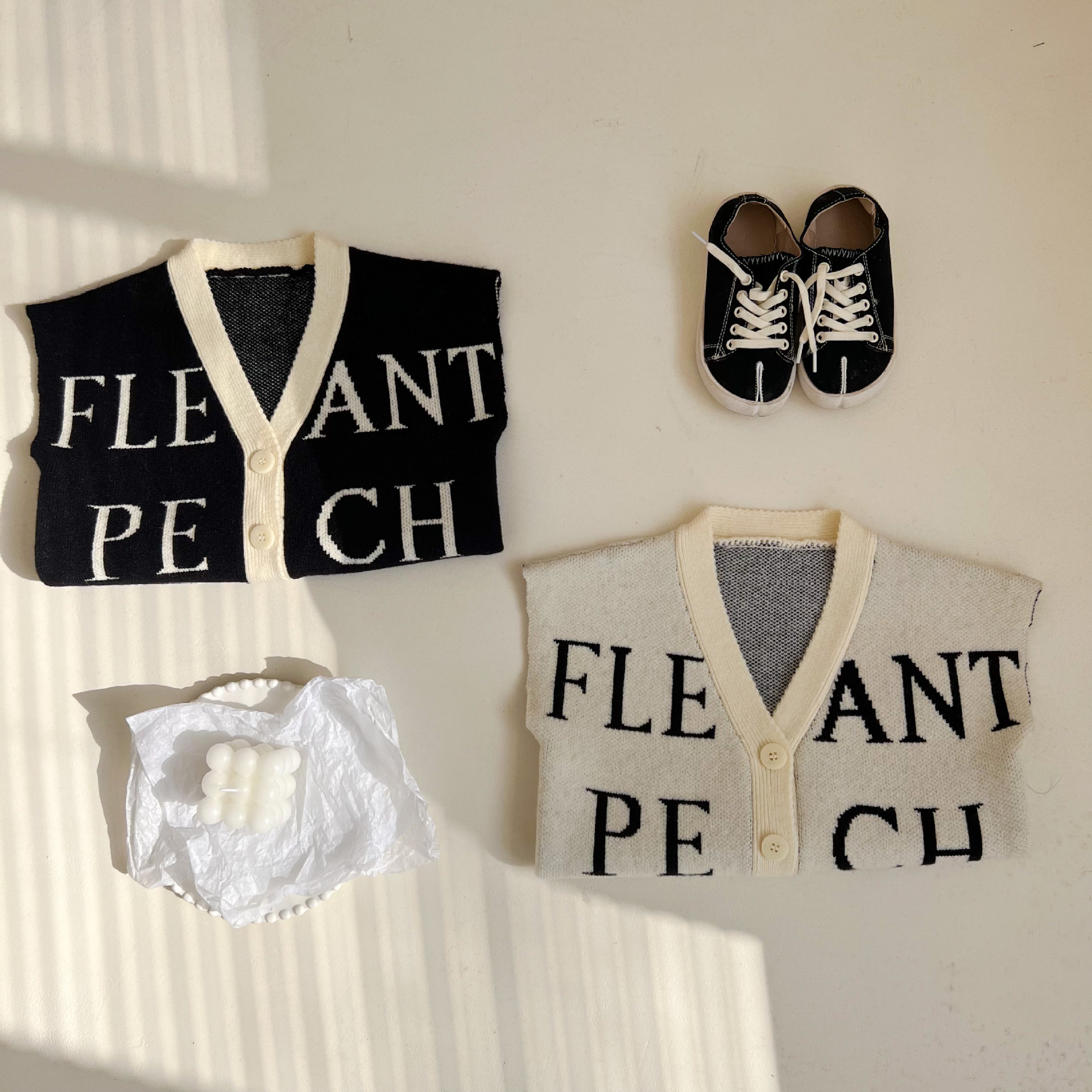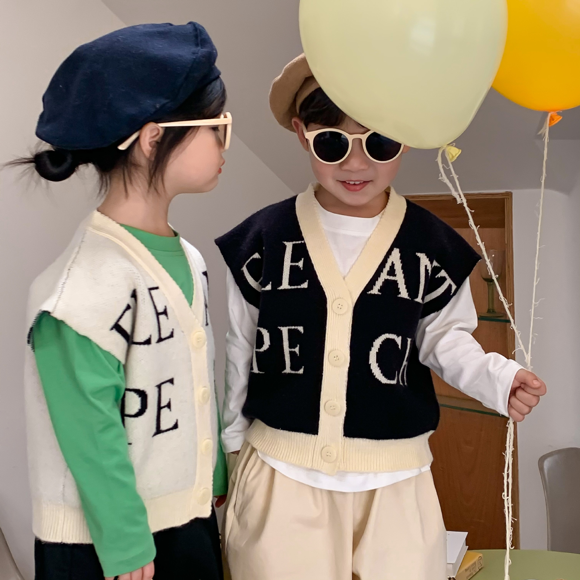Wheat Field Season Spring Children's Knitted Vest Boys Letter Vest Girls Vest Jacket Vest Cardigan