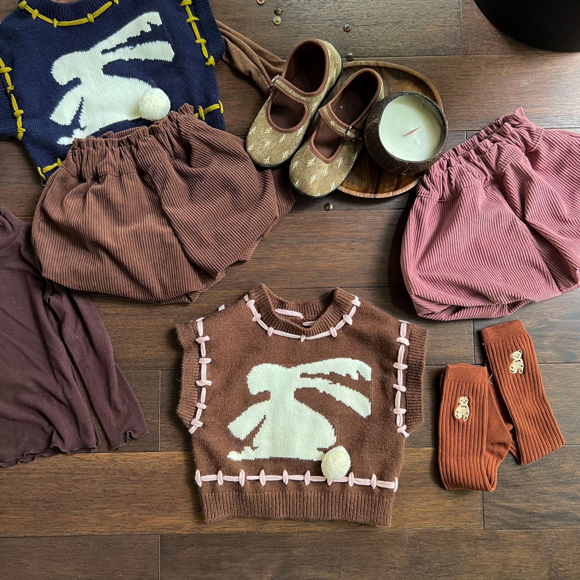 Wheat Field Season Autumn Korean Version Children's Cartoon Rabbit Vest Boys And Girls Cute Woolen Vest