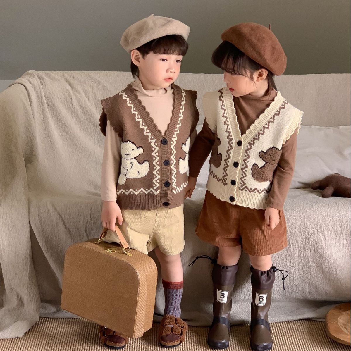 Wheatfield Season23 Autumn And Winter Korean Children's Clothing Children's Cartoon Bear Wool Vest Boys And Girls Wool Vest