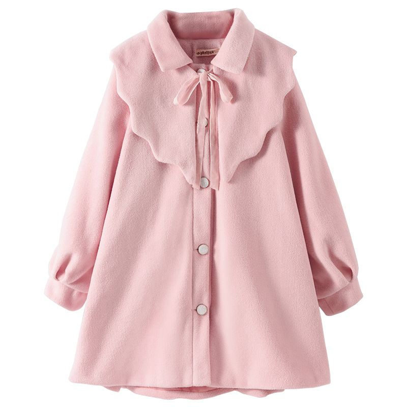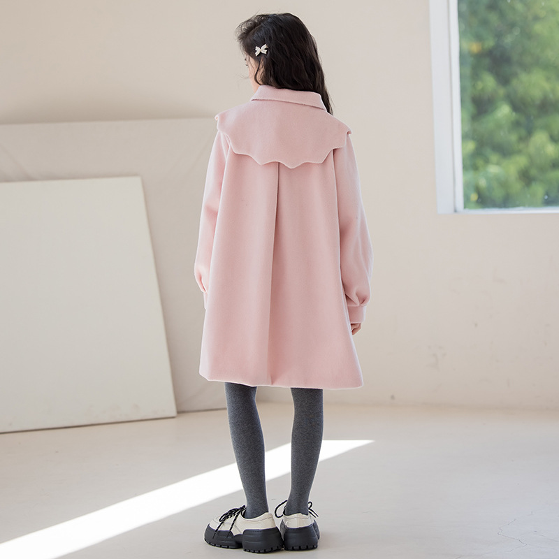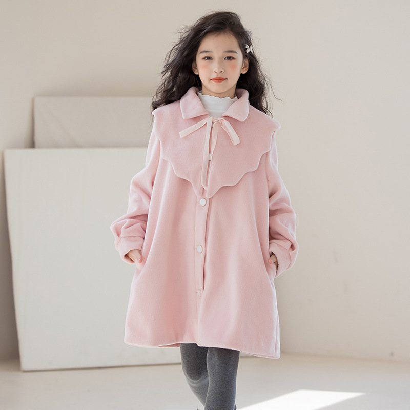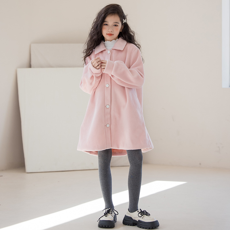 Children's Woolen Coat Mid-length Winter Girls'Clothes Korean Style Woolen Coat For Older Girls Plus Velvet