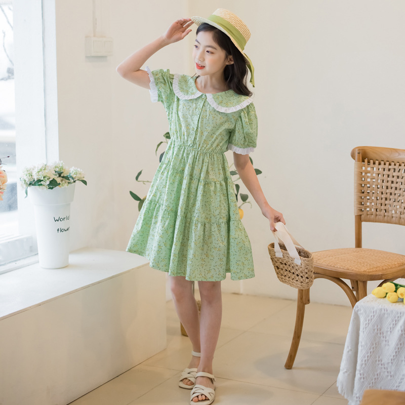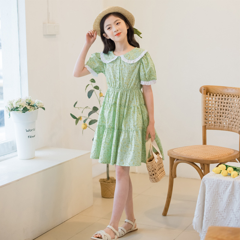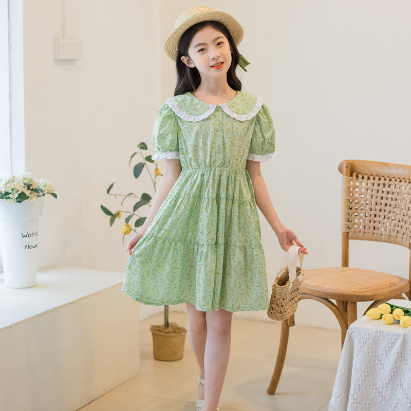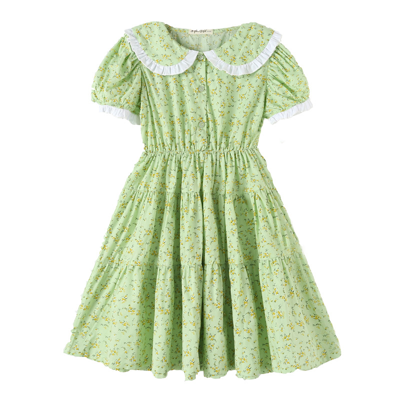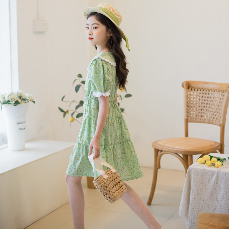 Children's Skirt Floral Skirt Summer One-piece Drop-shipping Primary School Student Short-sleeved Skirt Western Style Girl's Dress Cotton