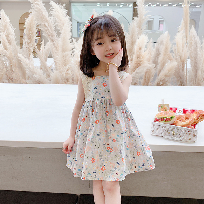 Children's Clothing Foreign Tradey Girls'Dress Summer Dress Baby Floral Princess Lace Suspender Skirt