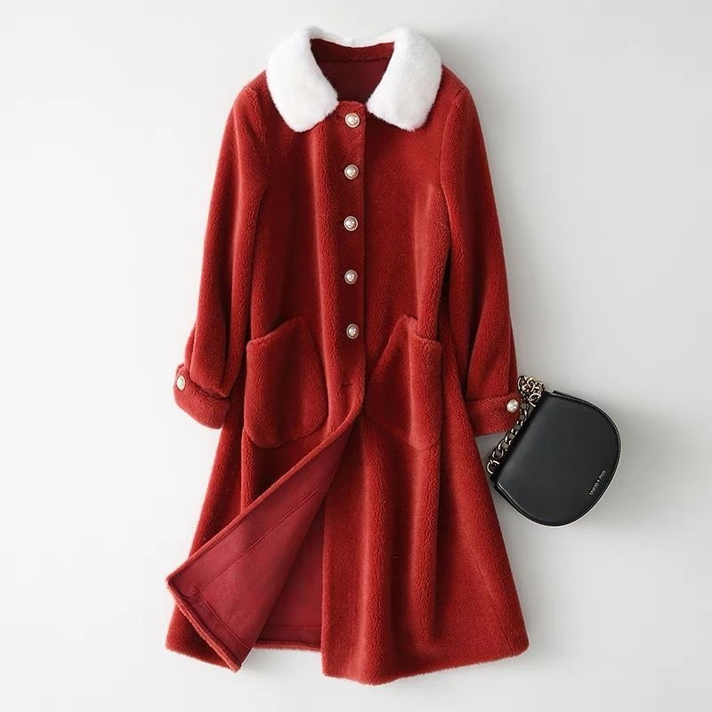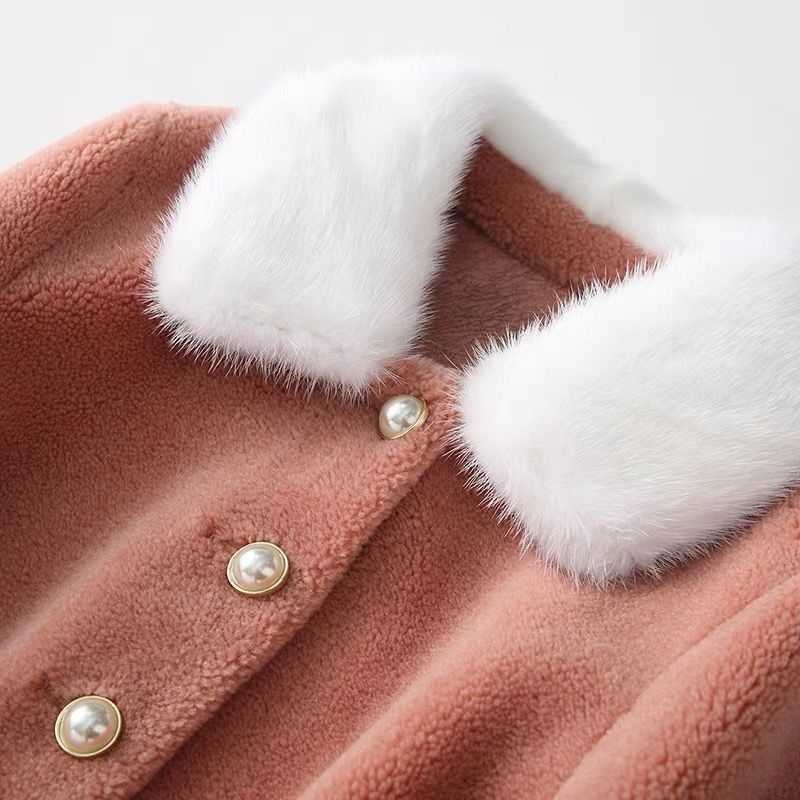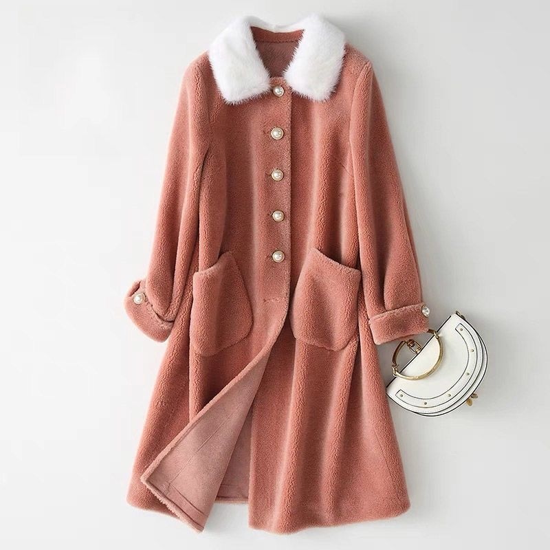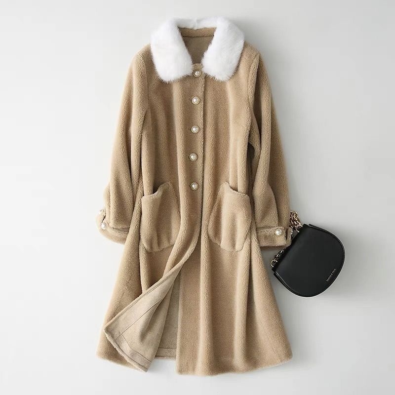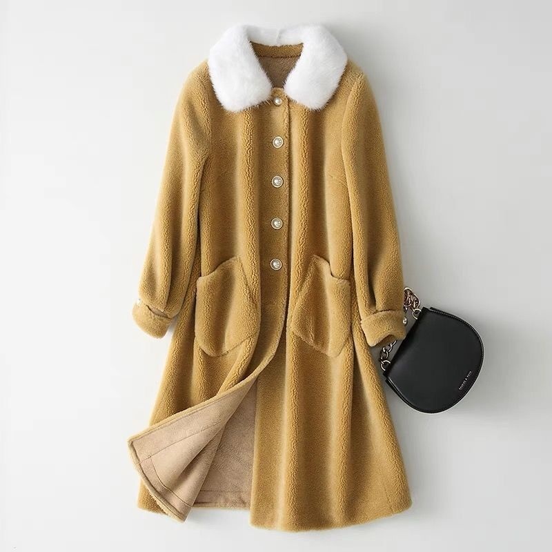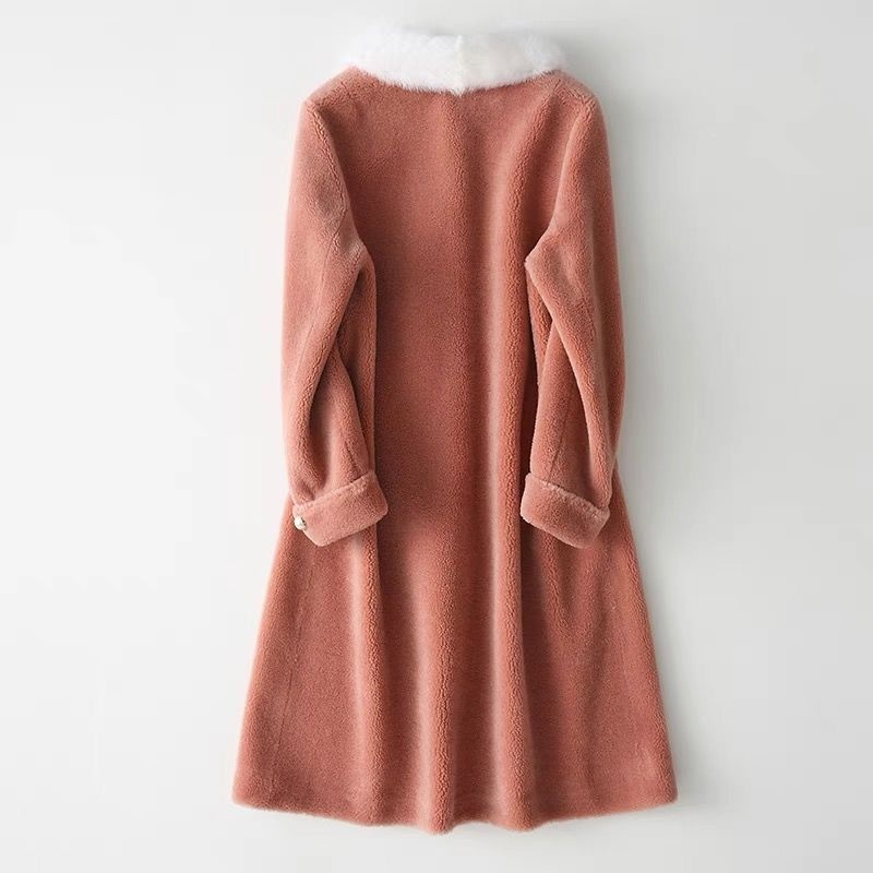 Wool Mink Collar Haining Sheep Sheared Coat Women's Long Mink Collar Wool Fur Coat