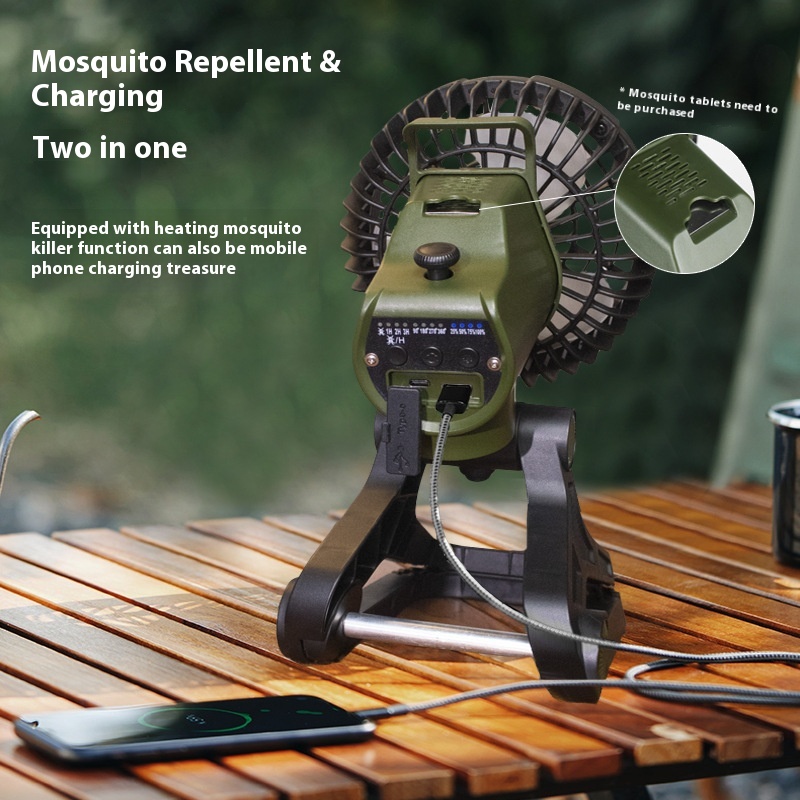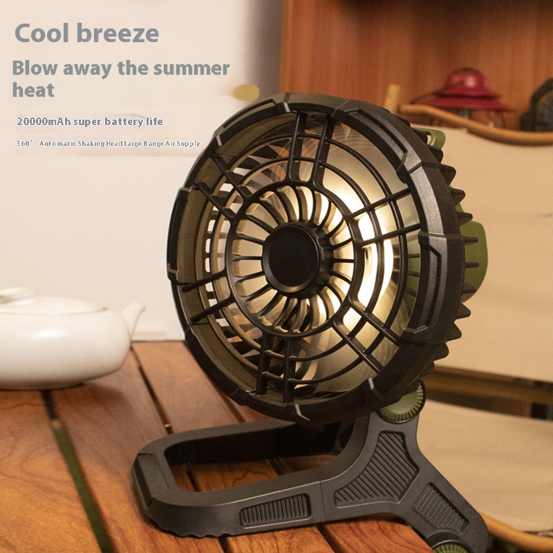 Camping Fan Shaking Head20000 M A Fixed Time Fan Camping Fan Lying On The Ground Clip Fan