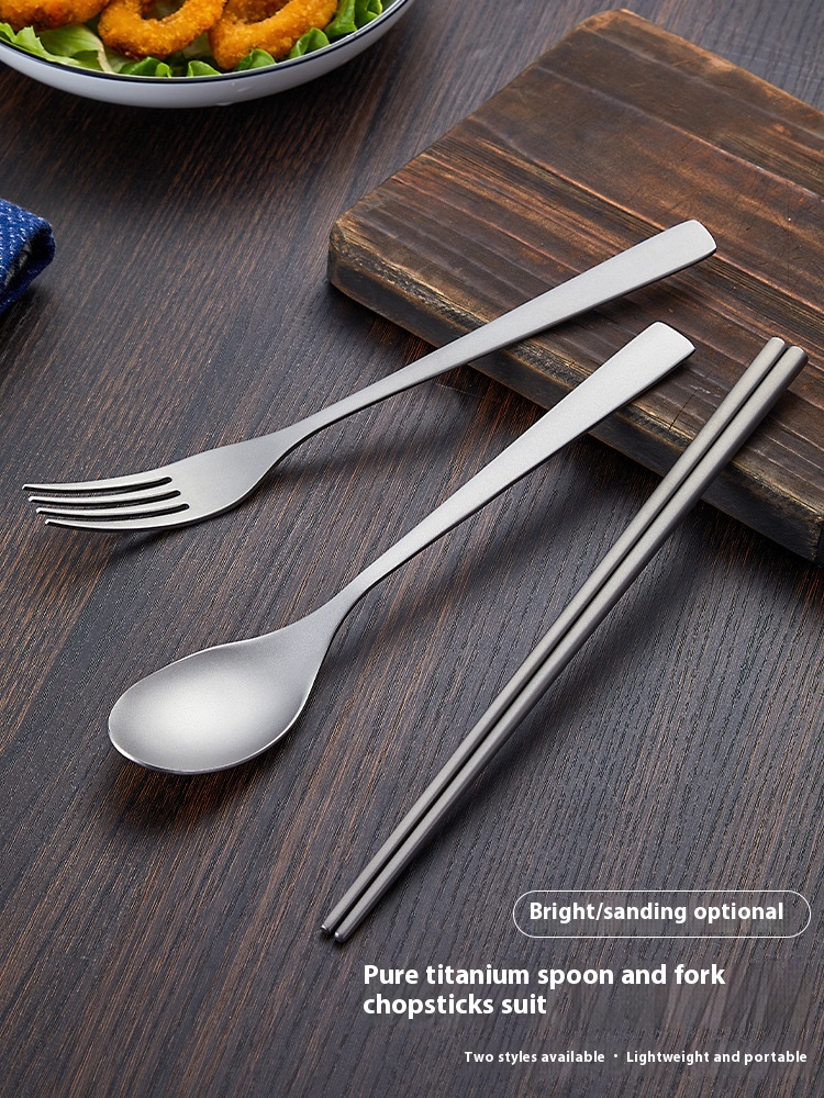 Pure Titanium Portable Tableware Set Spoon, Fork And Chopsticks Outdoor Travel Picnic Camping Tableware Home Outdoor Tableware Three-piece Set