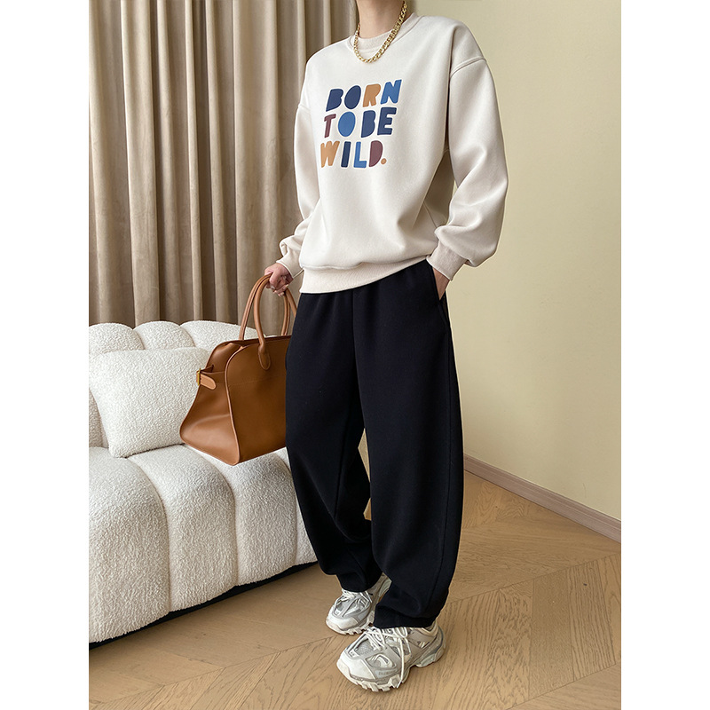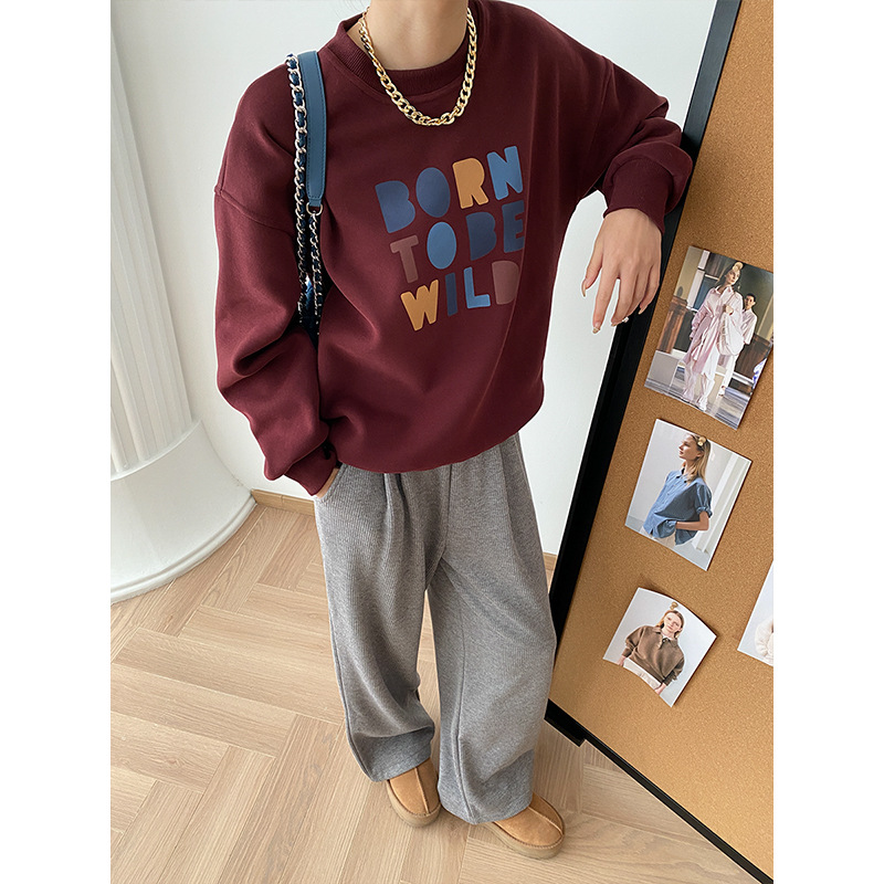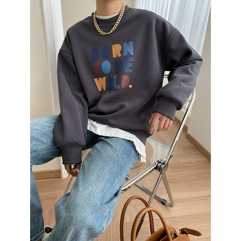 Sinan Casual Artistic Letter American Style Casual Loose Lazy Round Neck Plus Velvet Sweater Layered Wear SN4836
