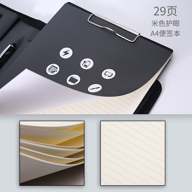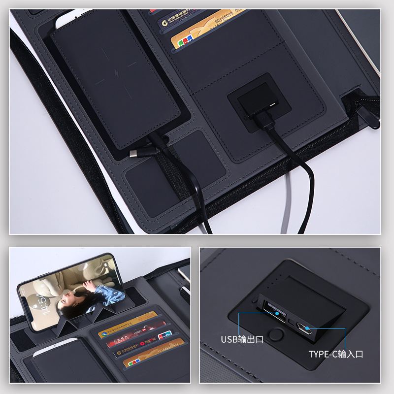 A4 Leather Zipper Wireless Power Bank Folder Business Office Leather Sales Information Mobile Power Manager Folder