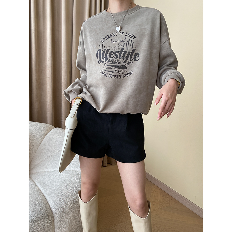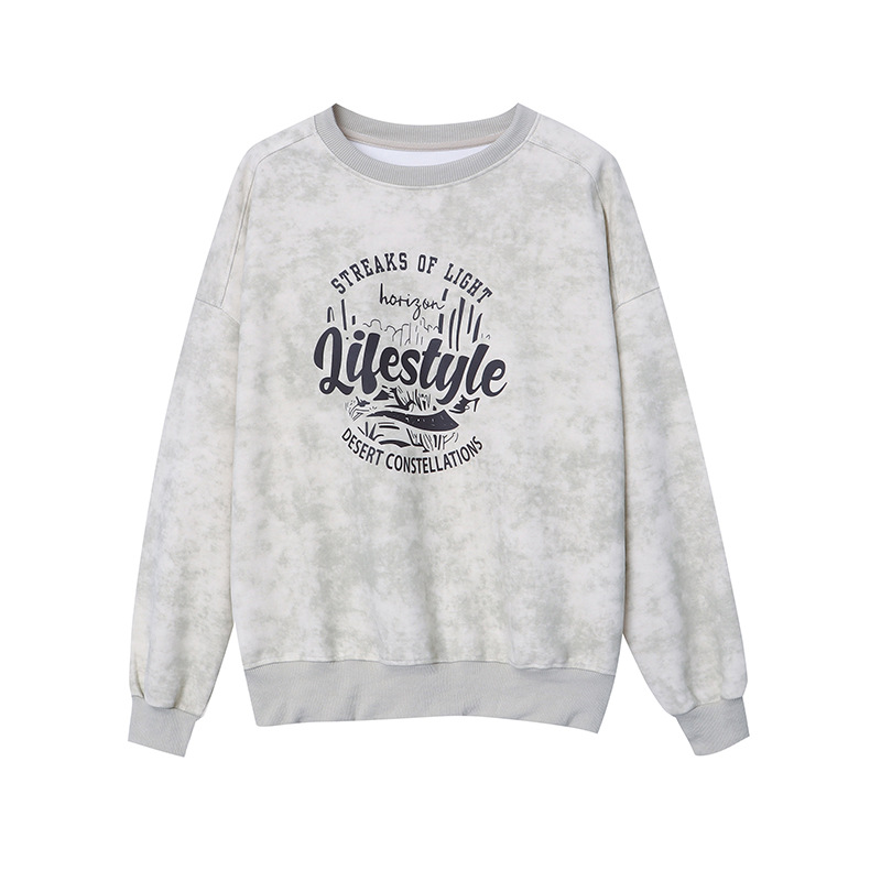 Sinan American Style Mottled Accent Casual Style Letter Printing Casual Round Neck Loose Shoulder Sweater SN4506