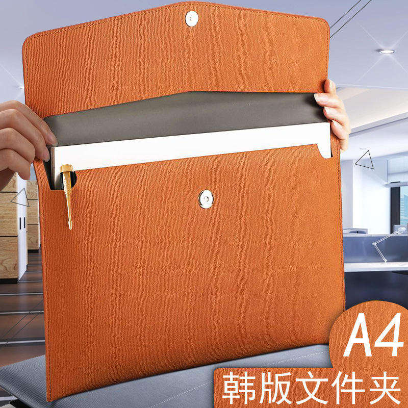 A4 Leather Magnetic Buckle Folder Bag Large Capacity Storage File Bag Conference Office Information File Bag