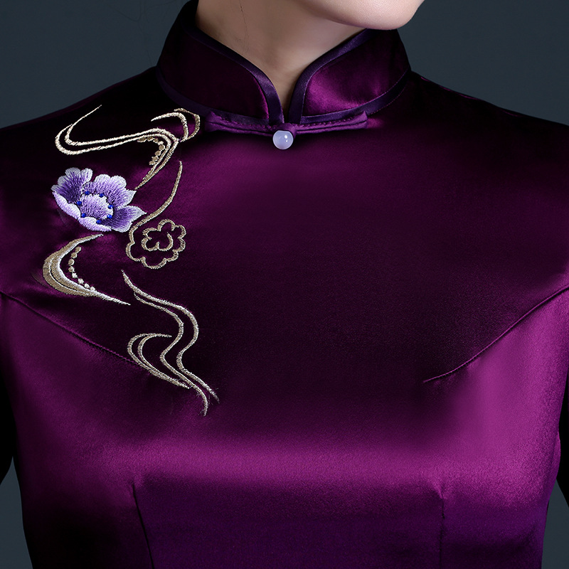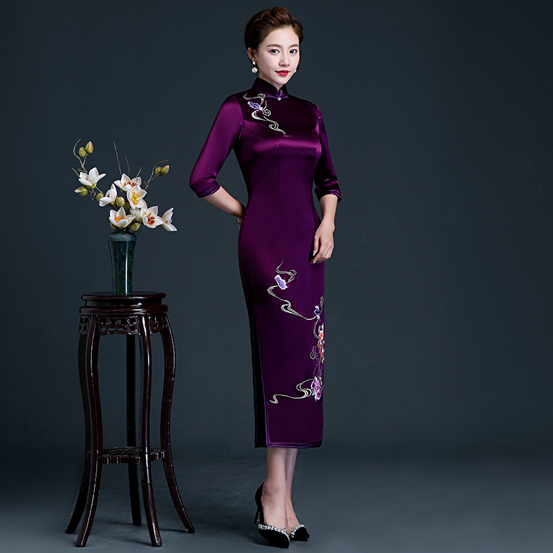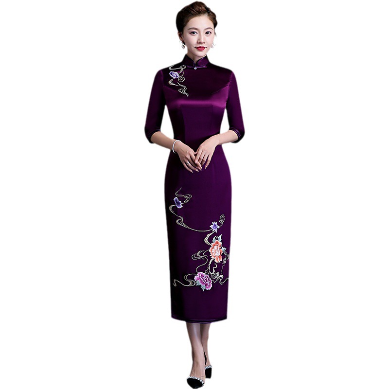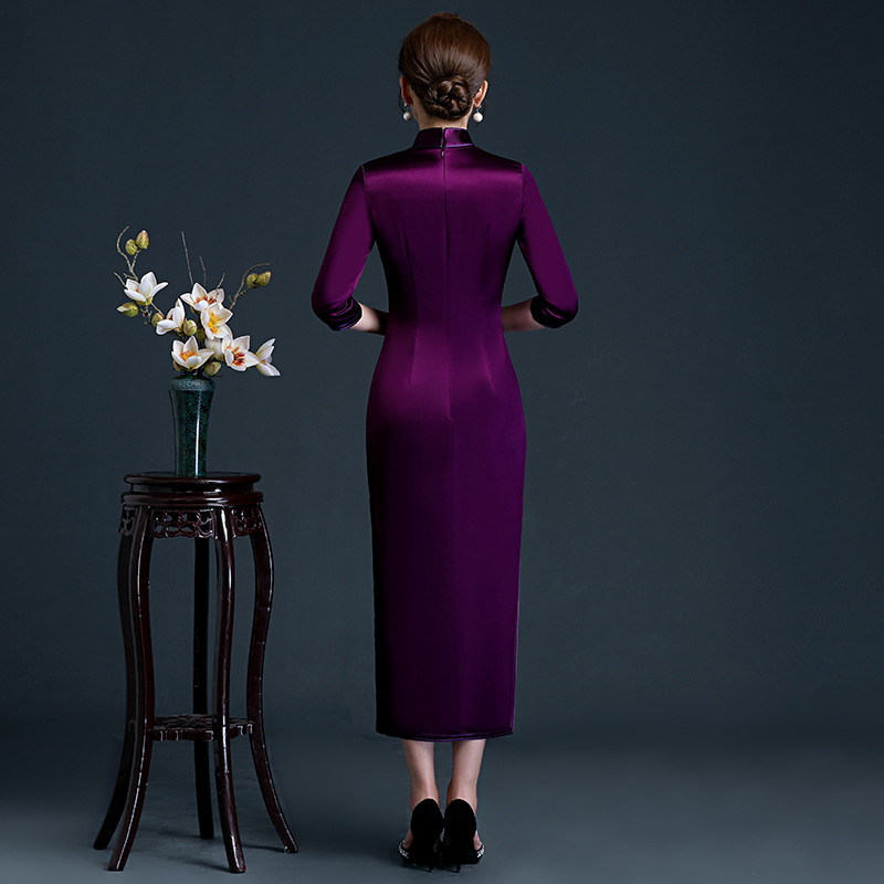 Married Mother's Dress Young Long Modified Cheongsam Dress Tang Style Slim High-end Dress Women's Autumn And Winter Style