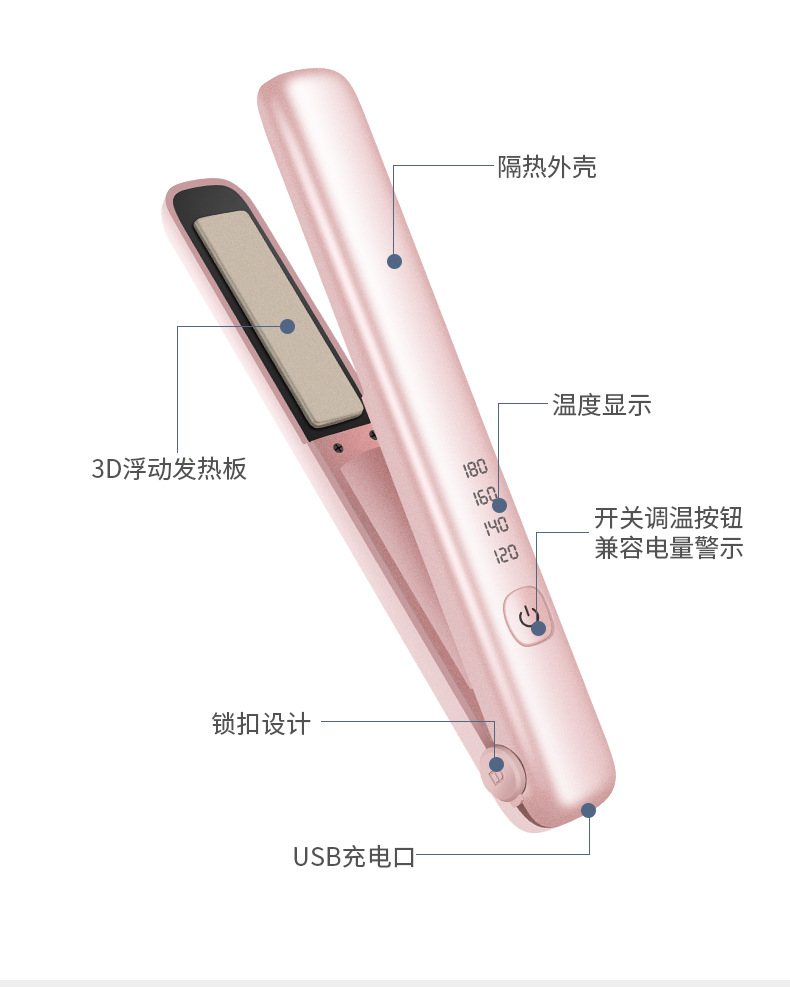 Usb Wireless Hair Straightener Charging Curling Iron Splint Straightening Iron Dual-use Mini Student Unplugged Dormitory Available