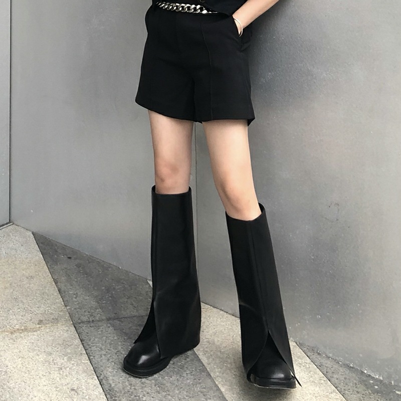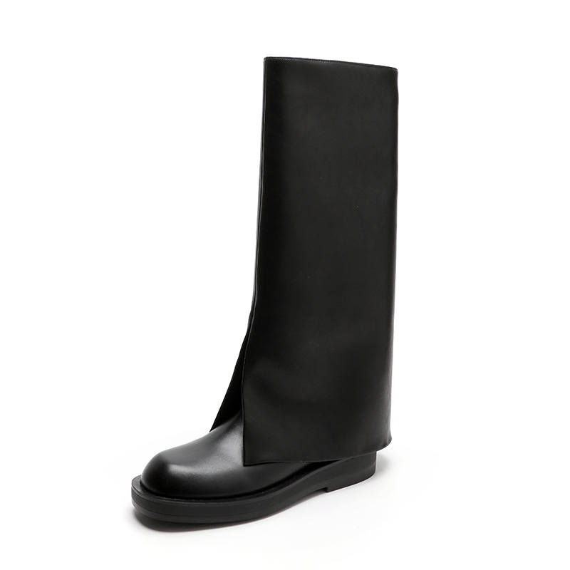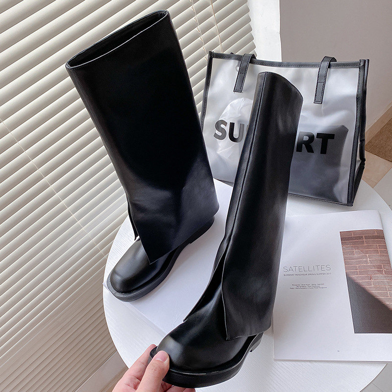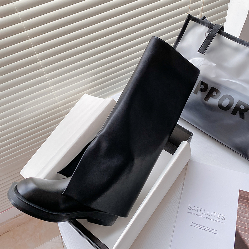 High-leg Trouser Boots,Knight Boots,Women's Spring And Summer Street Boots,Flat-soled Leather Boots