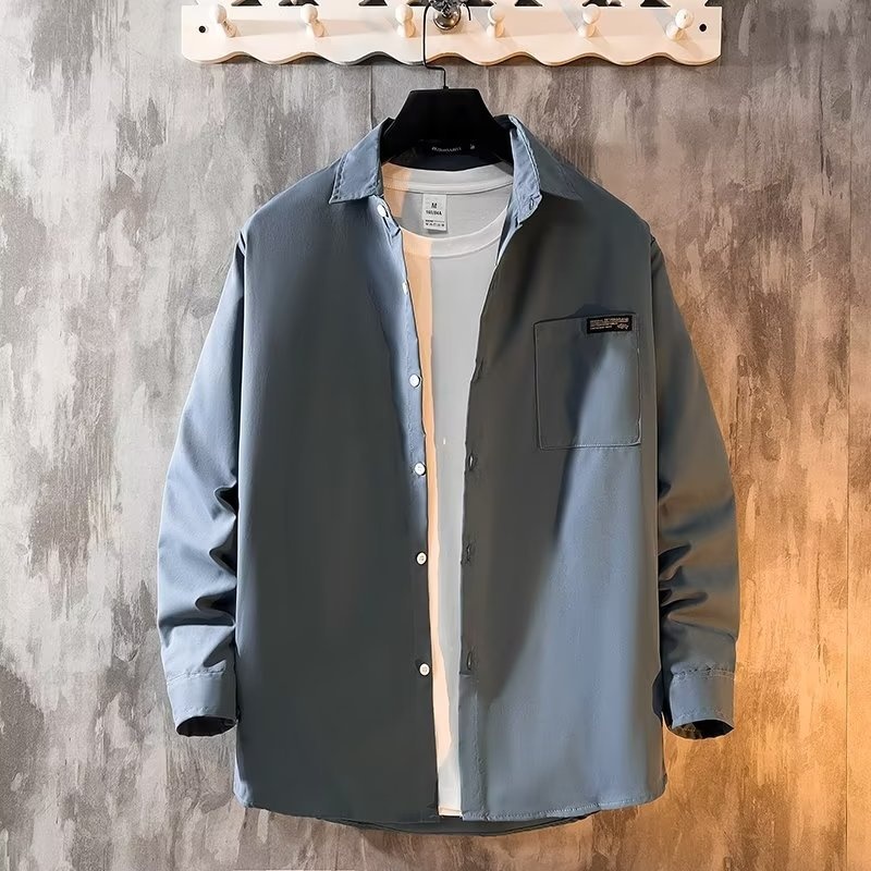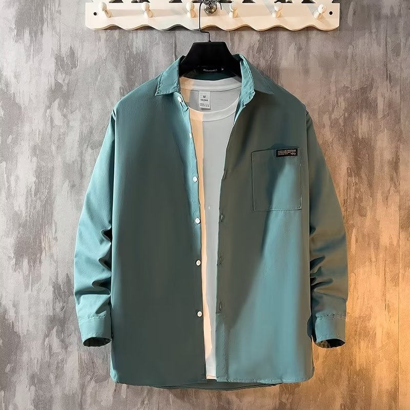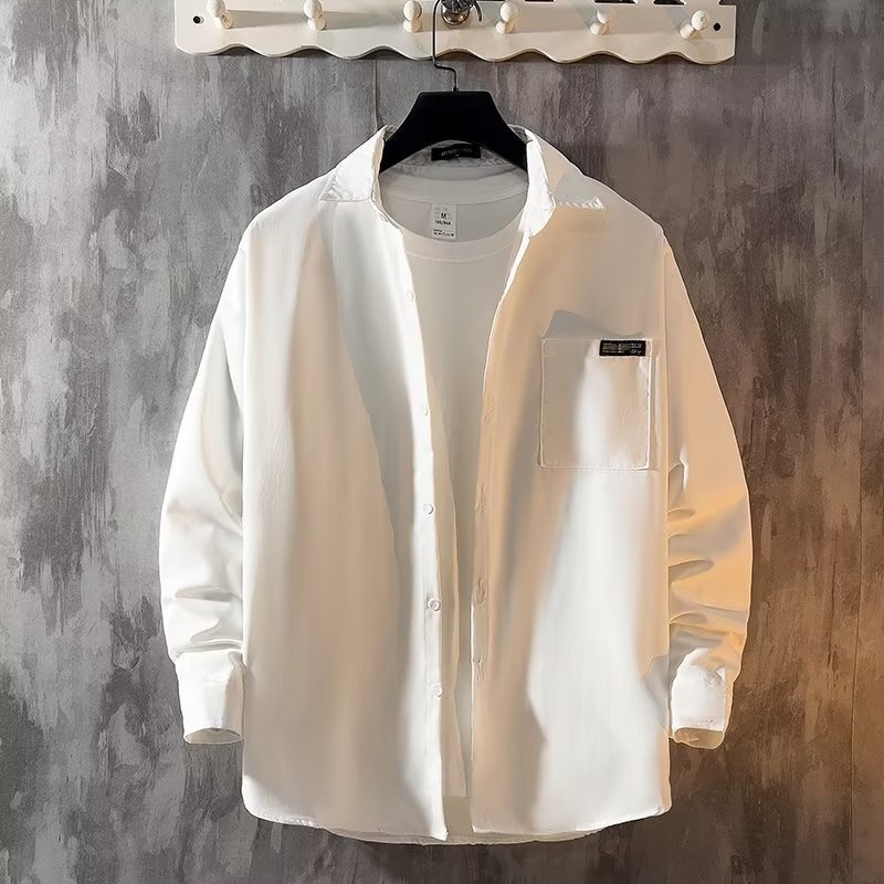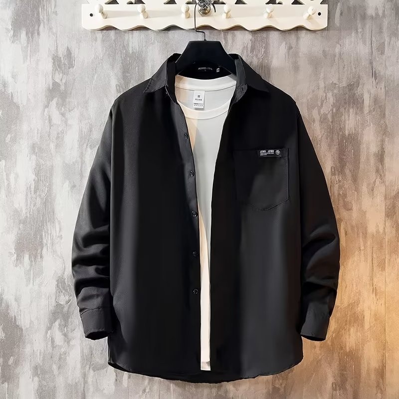 Solid Color Long-sleeved Shirts For Men, Spring And Autumny Hong Kong Style Inner Wear, Men's Workwear, Pointed Collar Shirts, Jackets, Thin Spring And Autumn Styles