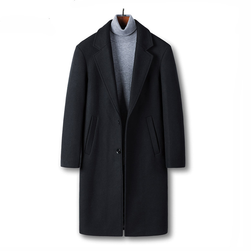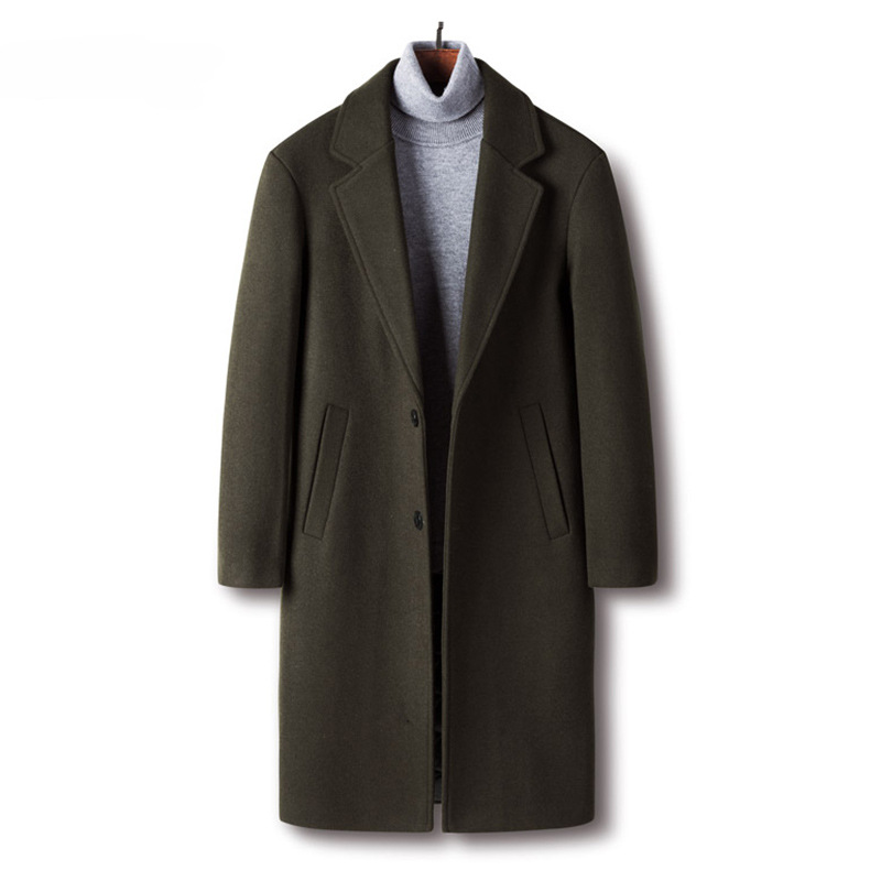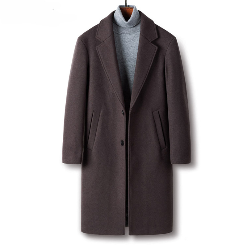 Woolen Coat Winter Korean Style Men's Casual Mid-length Coat Slim Solid Color Suit Windbreaker For Men