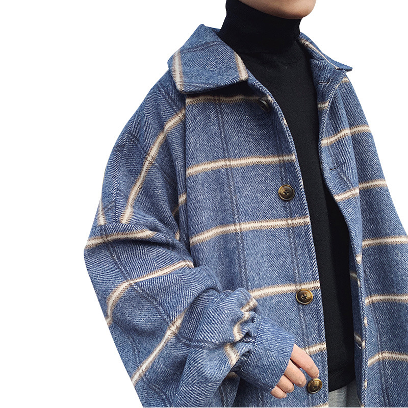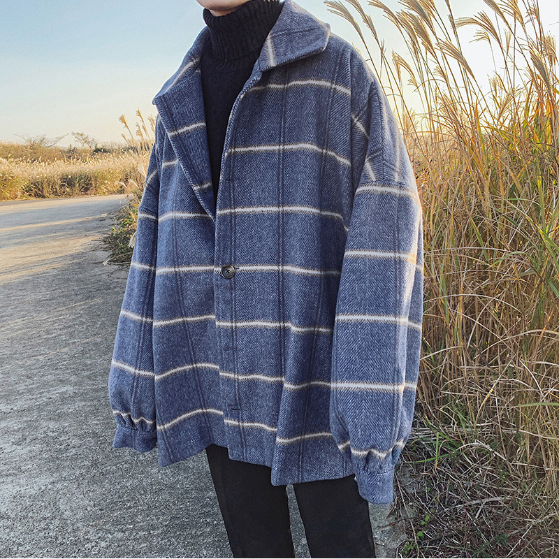 Winter Coat Men's Korean Styley Hong Kong Style Mid-length Plaid Windbreaker Autumn And Winter Men's Woolen Coat