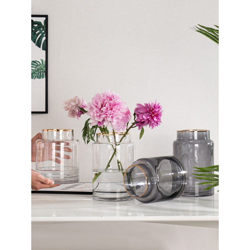 European Simple Transparent Glass Vase Hydroponic Flowers Rose Lily Flower Arrangement Vase Living Room Table Decorations