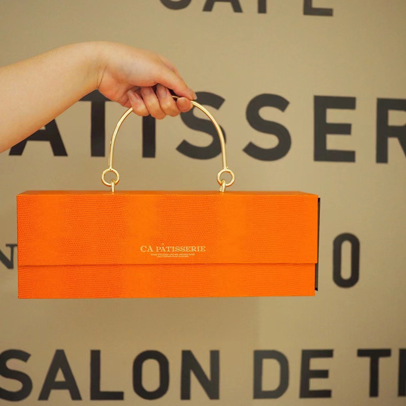 Gift Box Orange High-end Souvenir Gift Box Metal Handle Mid-Autumn Moon Cake Box Can Be Added With High-end Wedding Box