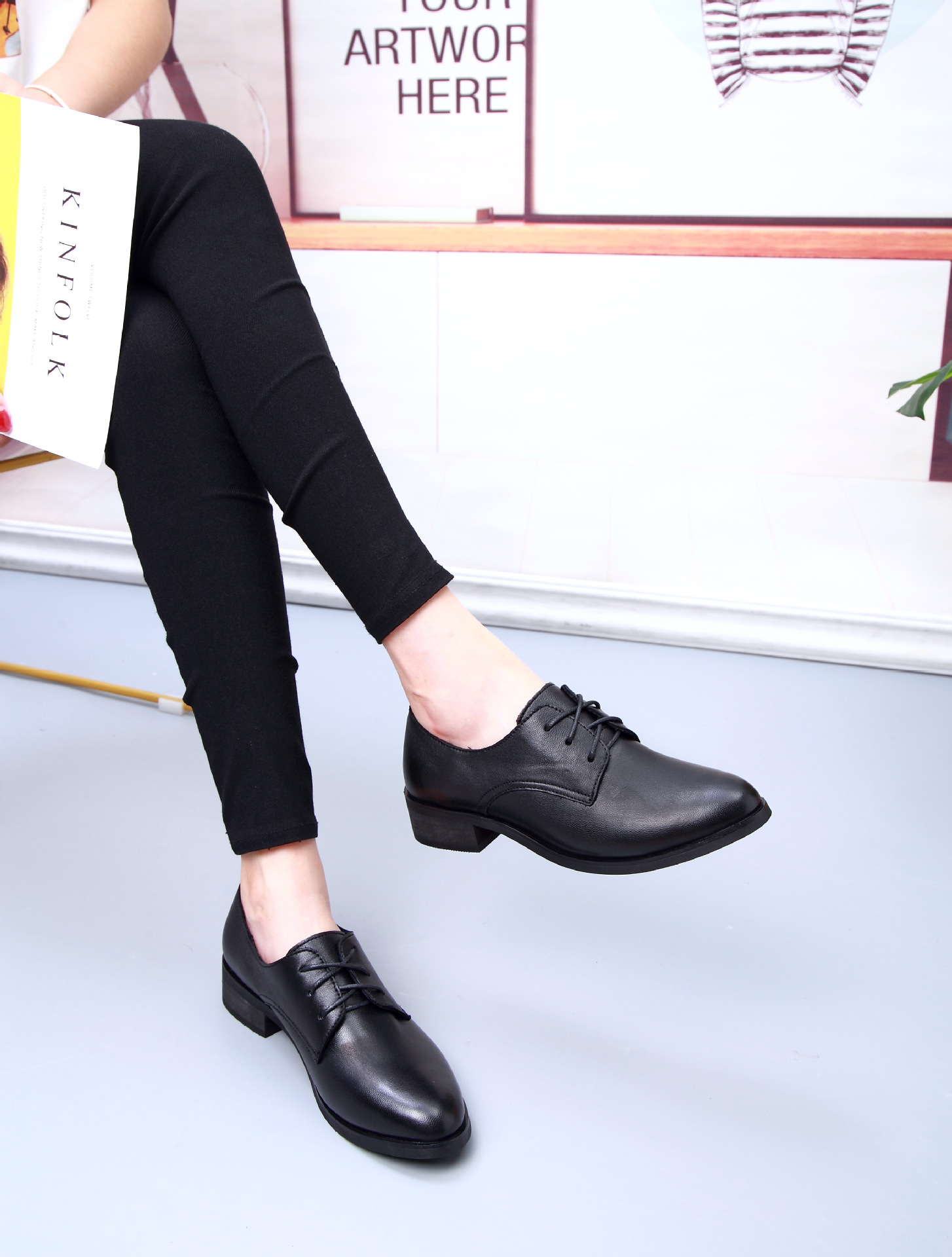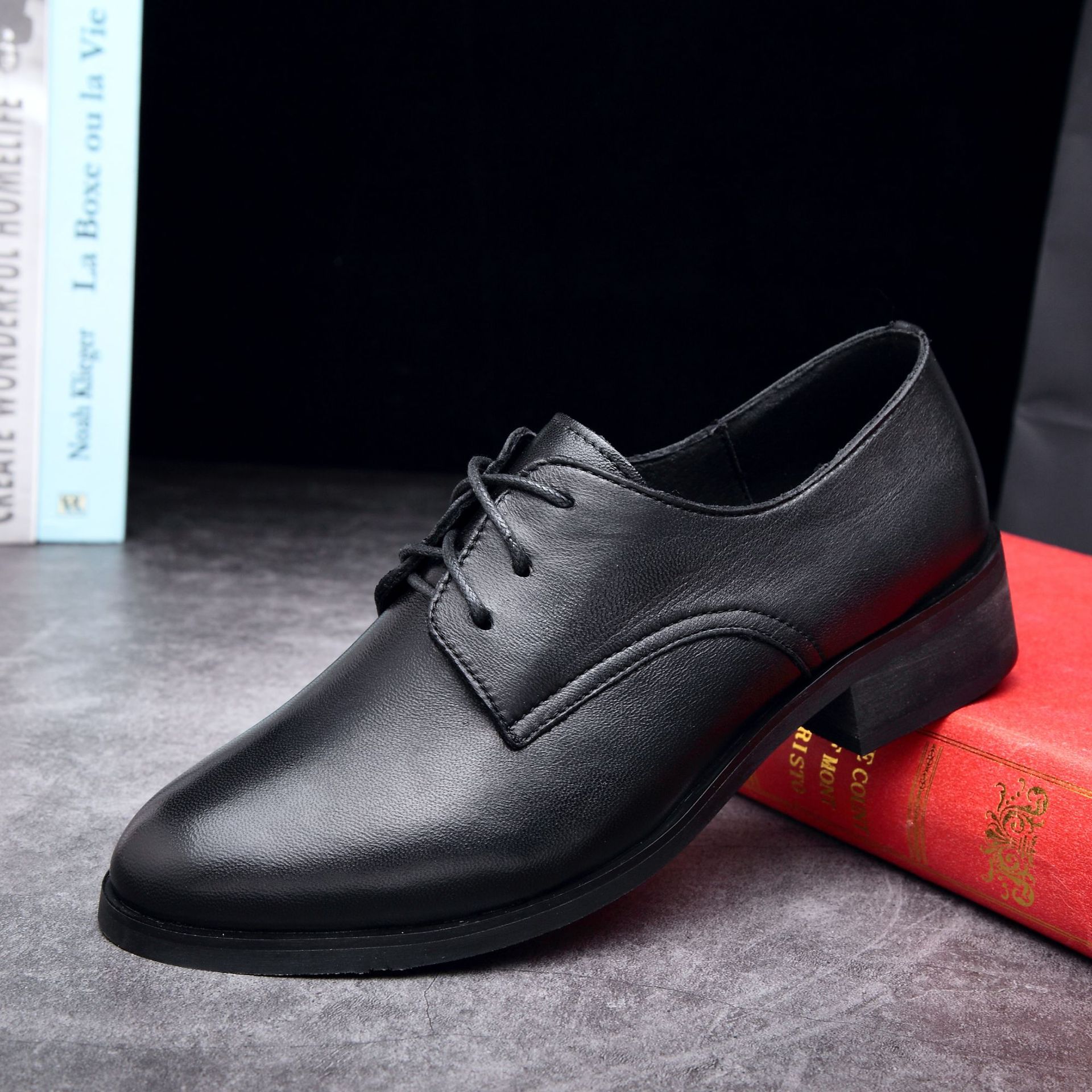 Genuine Leather Shoes For Women,Classic Retro British Style Pointed Toe Lace-ups,Flat Soles,Thick Heels,Women's Leather Shoes,Loafers,Drop Shipping