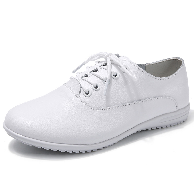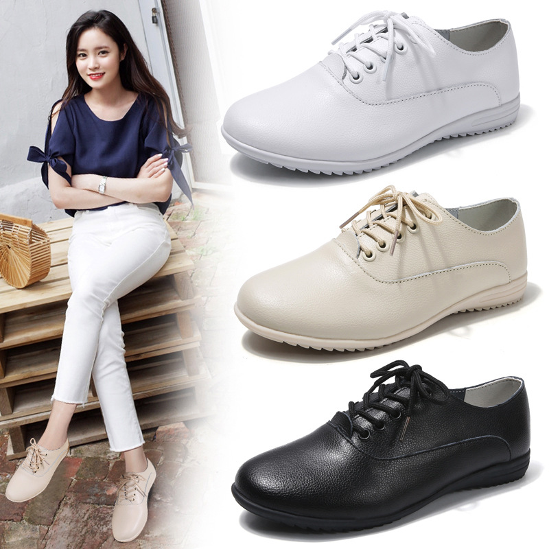 Women's Shoes Spring Korean Style Flat White Shoes Lace-up Round Toe Casual Non-slip Large Size Women's Shoes