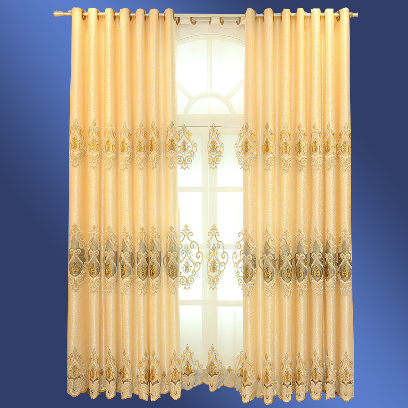 European Style Embroidered Curta,Light Luxury Palace High-end Embroidered Window Screens,Finished Living Room And Bedroom Sun Protection And Blackout Curtain Fabrics