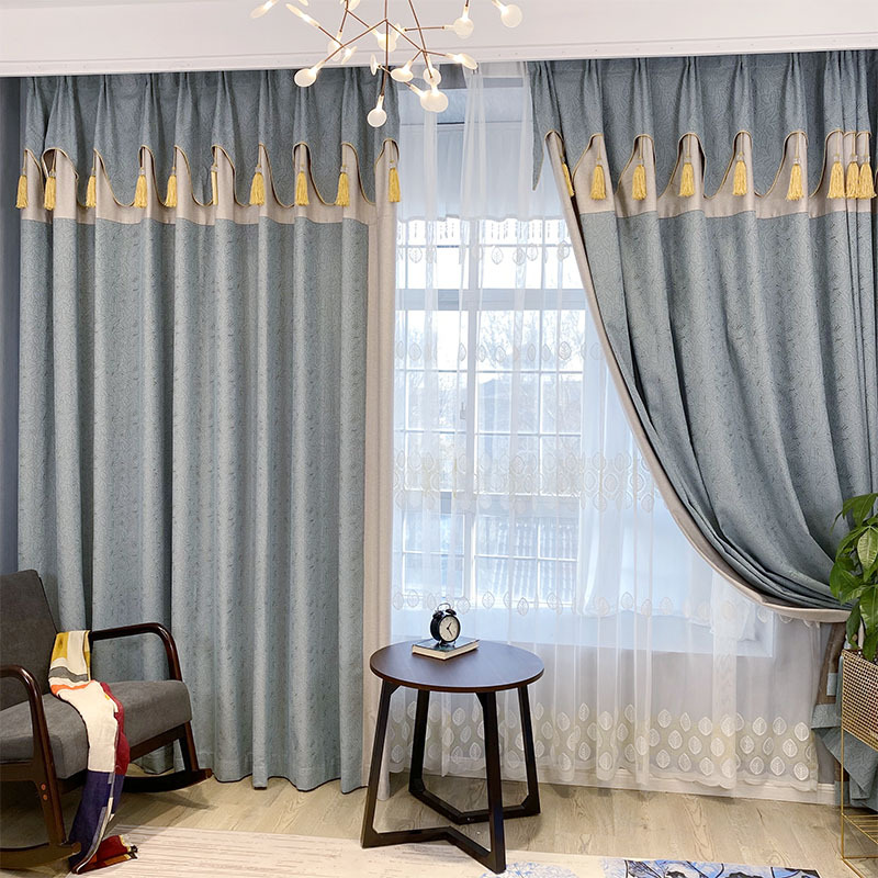0 LWHFinished Curta Come With Curtain Head Jacquard Blackout Living Room Bedroom Splicing Curta Can Be Super High