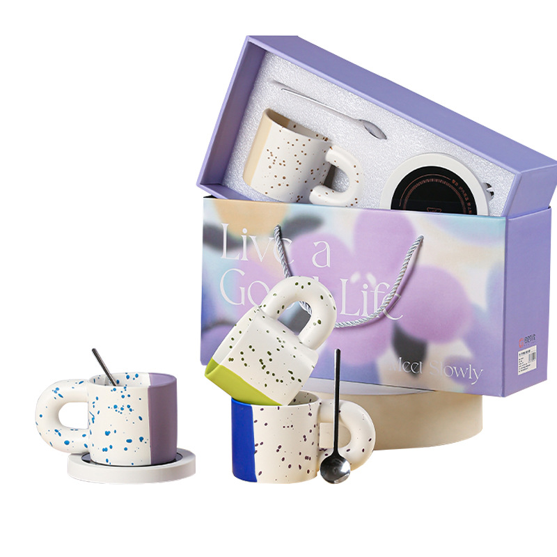 Creative Style Splash-ink Ceramic Water Cup Warm Cup Year's Gift Set Thermostatic Cup Couple Gift