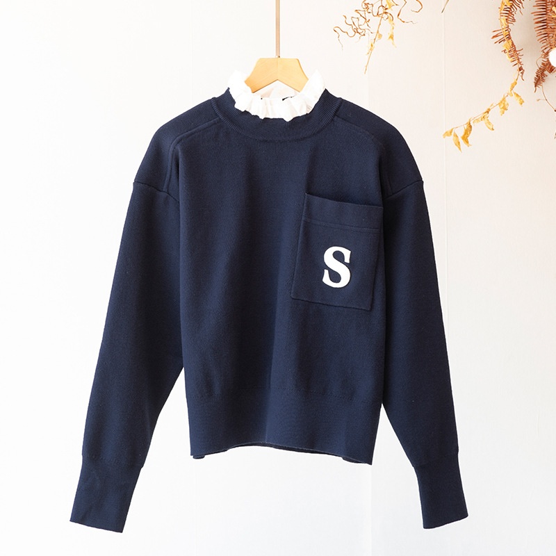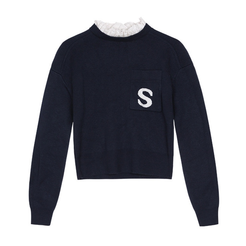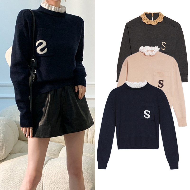 French Single S Home Autumn And Winter Letter Embroidered Sweater Women's Loose Sweater Fake Two-piece Stand-up Collar Sweater