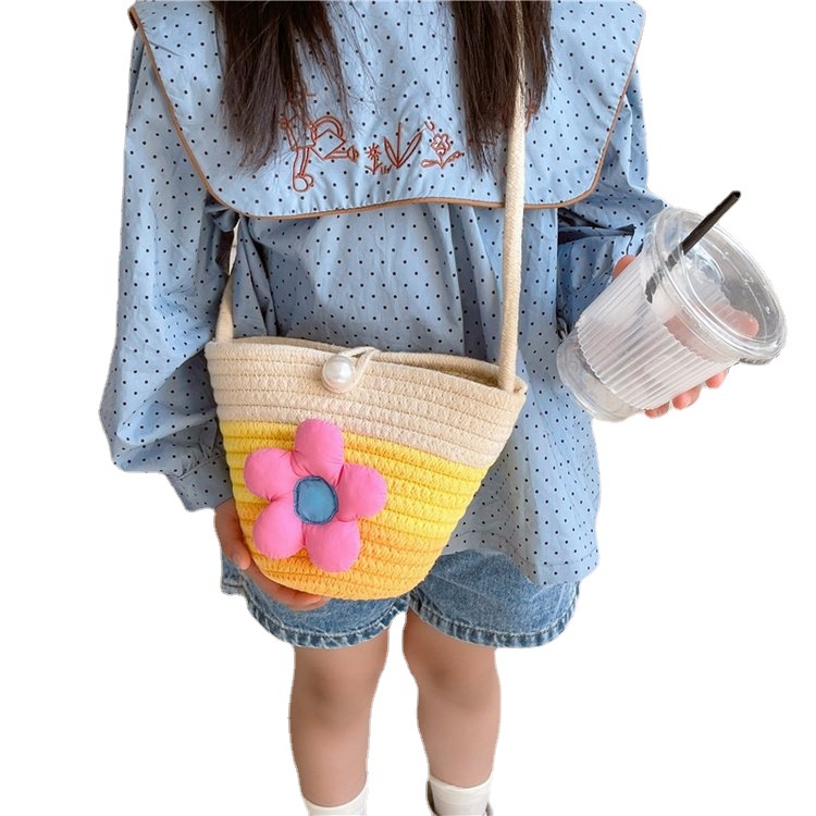 Woven Bag Children's Rattan Cute Flower Bucket Bag Seaside Versatile Holiday Beach Crossbody Bag