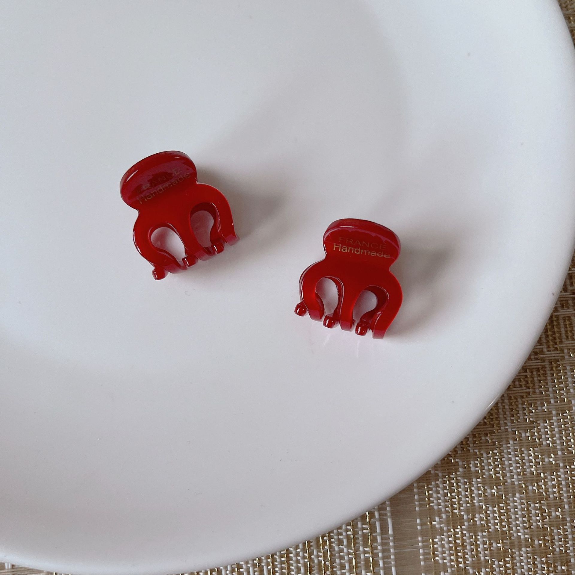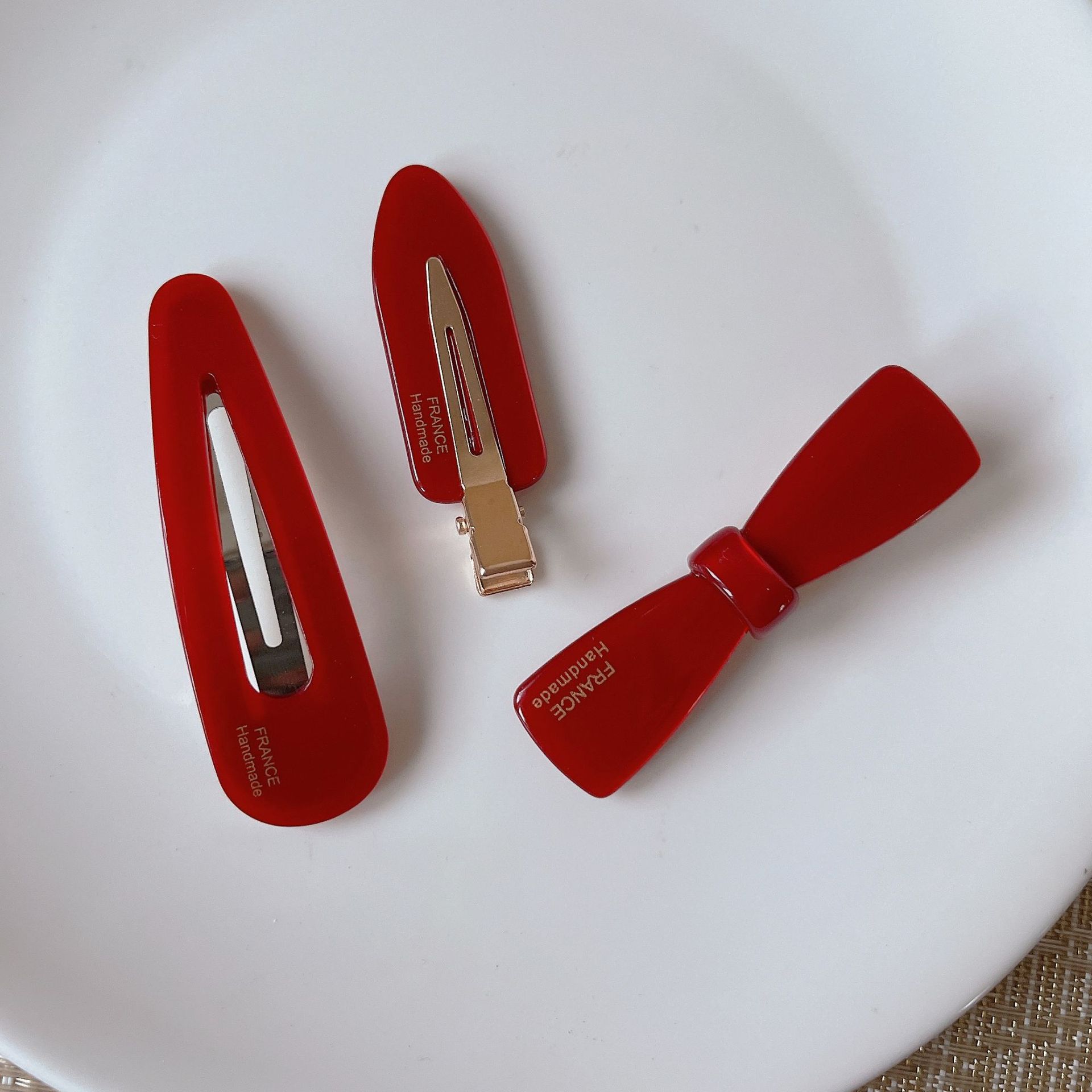 Korean Style Acetic Acid Small Gold Label Hairpin Cute Retro Year Burgundy Mini Clip Bangs Clip Small Hair Side Clip