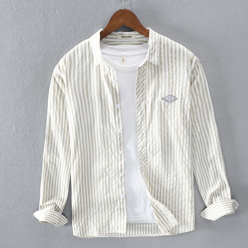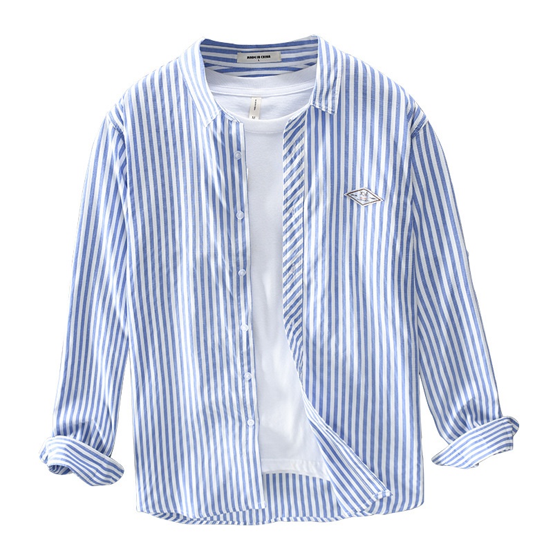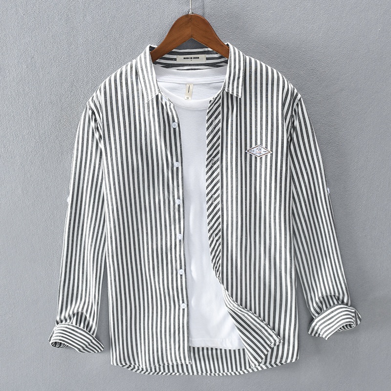 Spring Casual Striped Long-sleeved Men's Shirt Drop Shipping T217