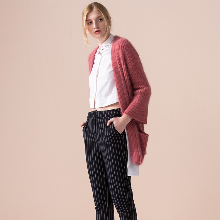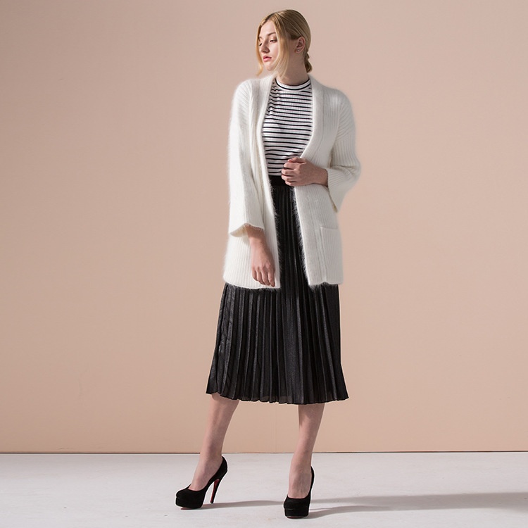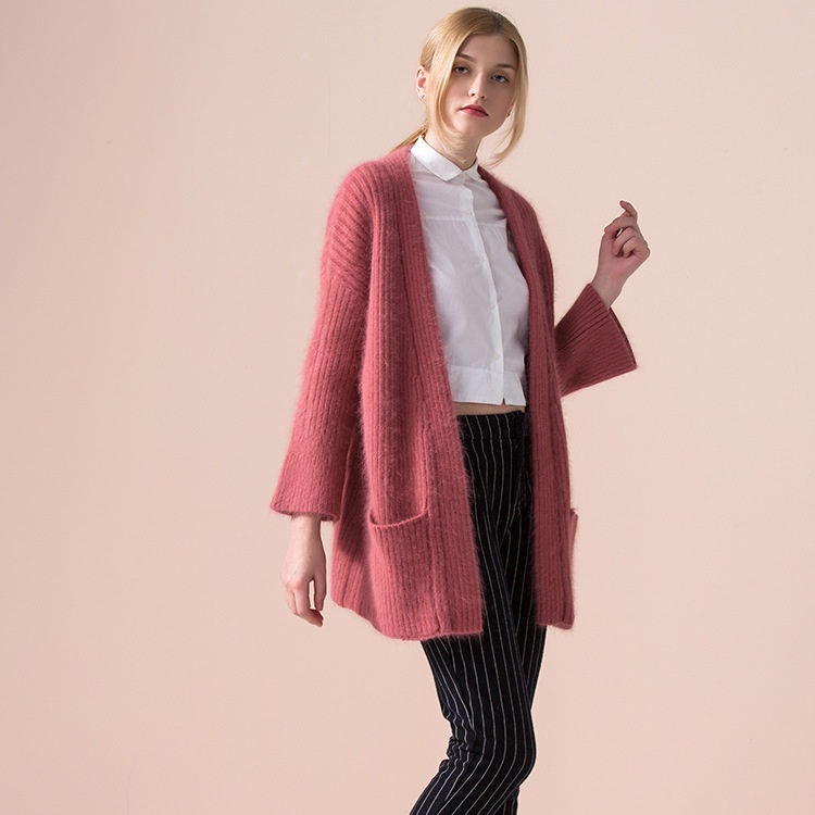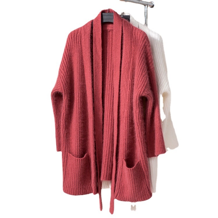 Knitted Sweater Thickened Sweater High Ratio Rabbit Fur Solid Color Knitted Cardigan Long Sleeve V-neck Ladies Sweater