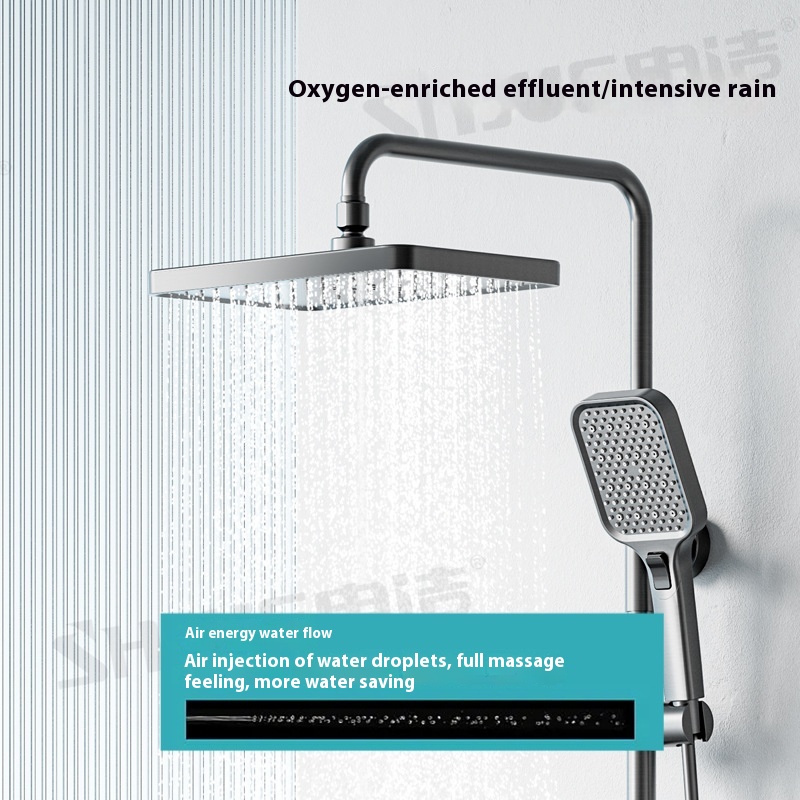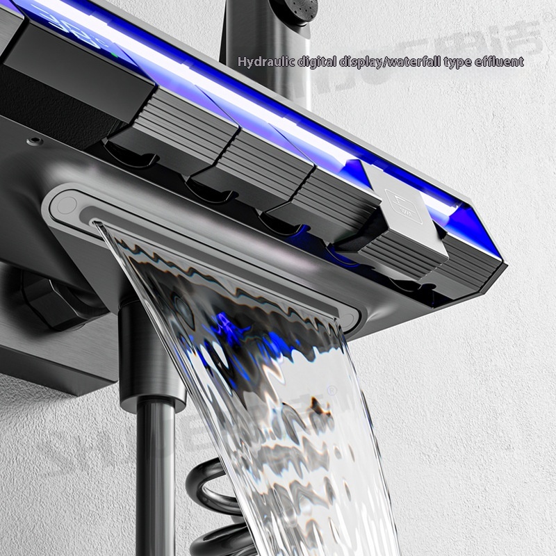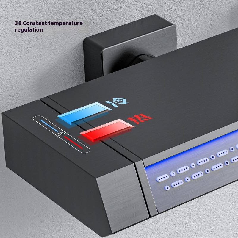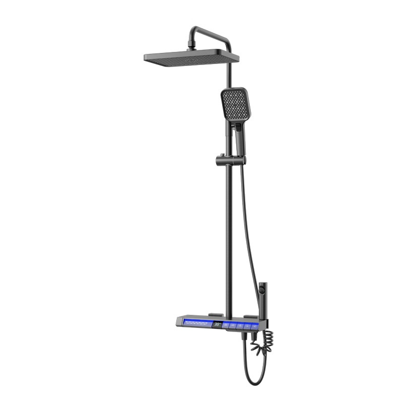 Gun Gray All-copper Piano Button Five-function Spray Back Shower Set Intelligent Constant Temperature Digital Display Large Storage Supercharged Shower