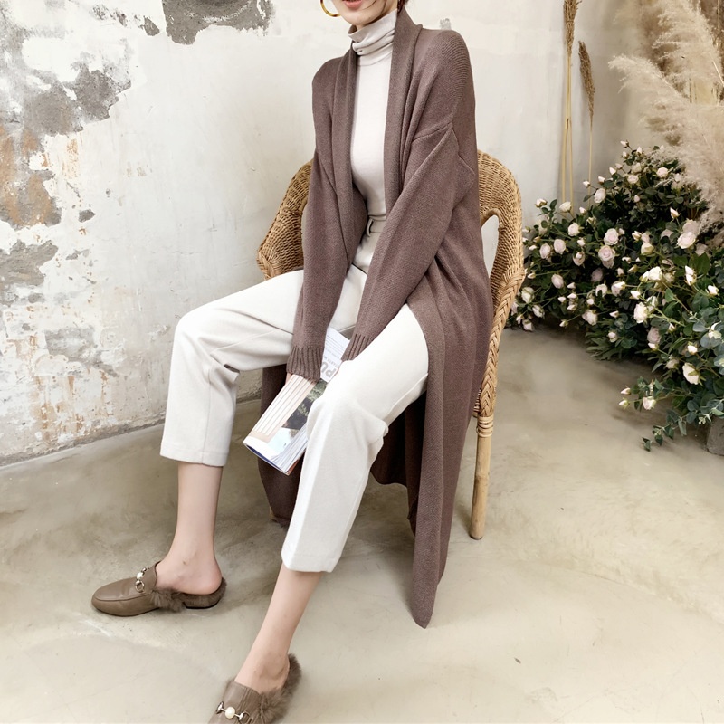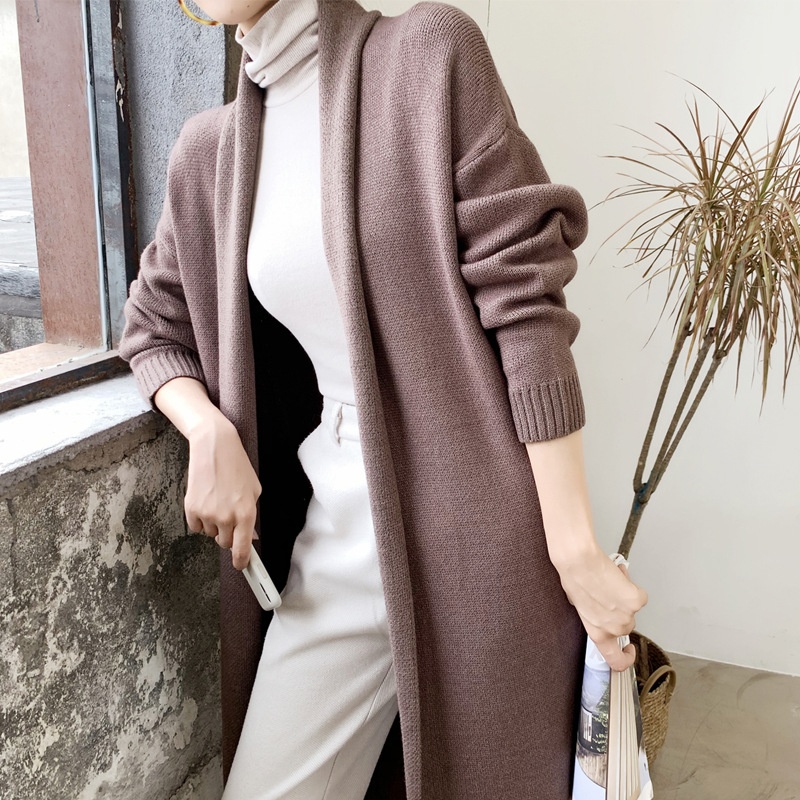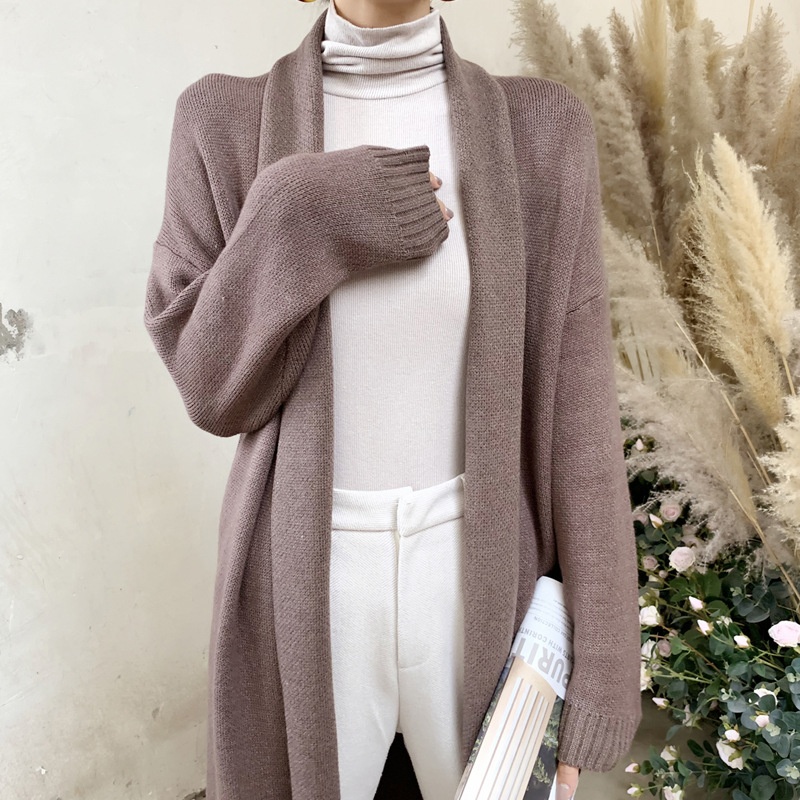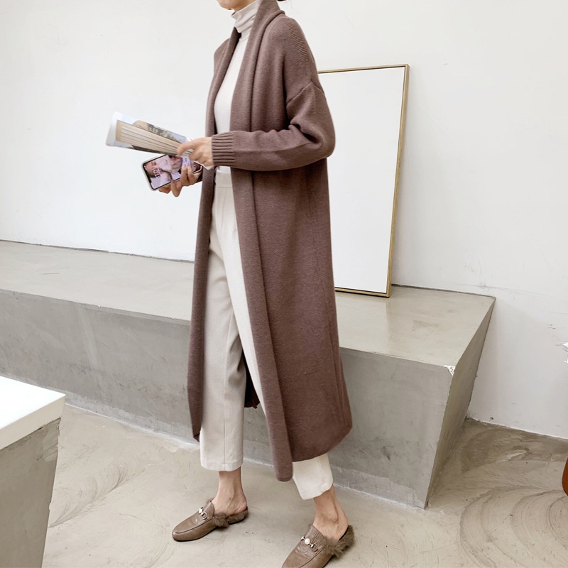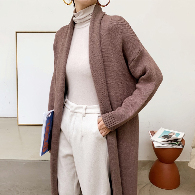 Japanese And Korean Foreign Single Women's Autumn And Winter Lazy Loose White Cardigan Dress Long Thickened Warm Knitted Sweater