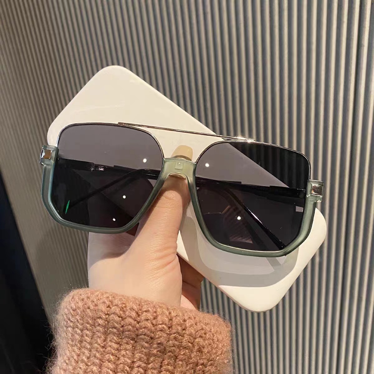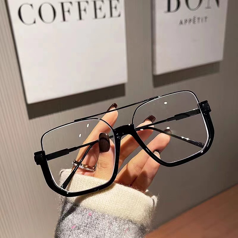 Plain Double Bridge Large Frame Anti-blue Light Retro Glasses Lower Half Frame Square Sunglasses Female Internet Celebrity Street Photography Sunglasses