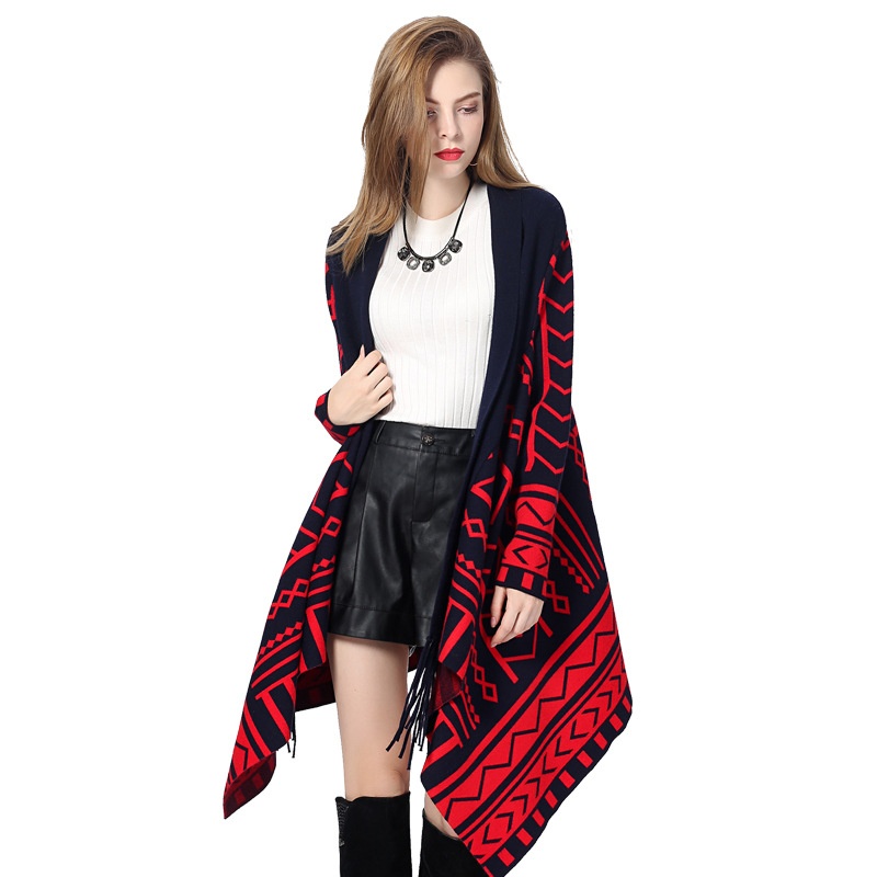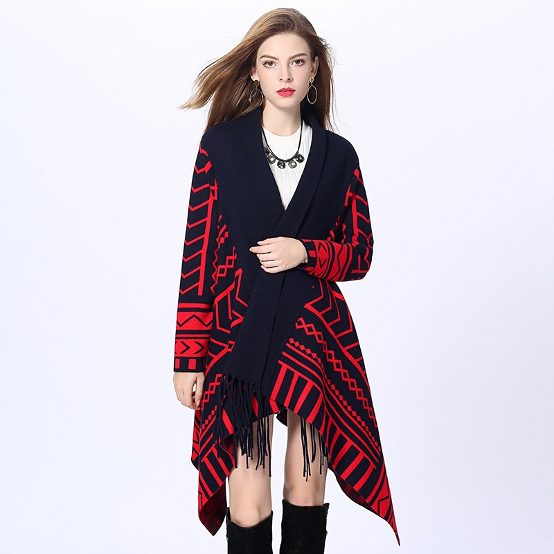 1141# Autumn And Winter Style Mid-length Tassel Knitted Shawl Cardigan Shawl Knitted Sweater Irregular Cardigan Shawl