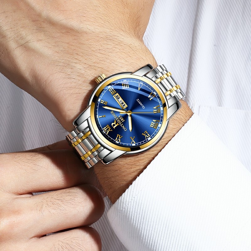 Genuine Men's Stainless Steel Watch-Quartz Timepiece With Three Hands And Business Style Design