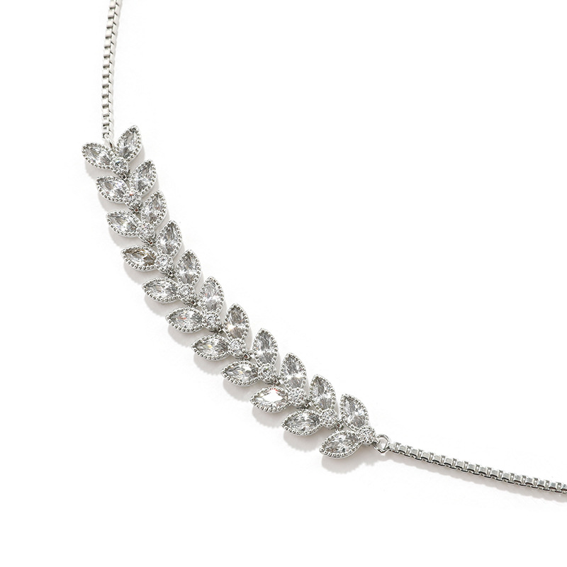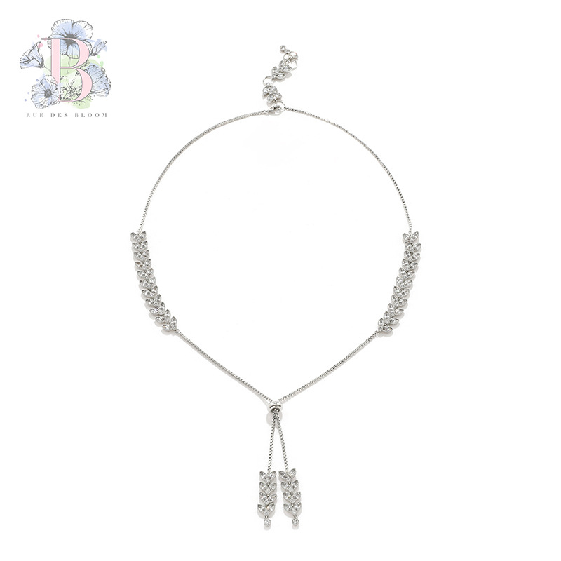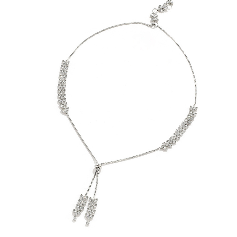 Kenjie Designer Original Leaf-shaped Teardrop-shaped Women's Adjustable Telescopic Buckle Silver Zircon Necklace Female Processing